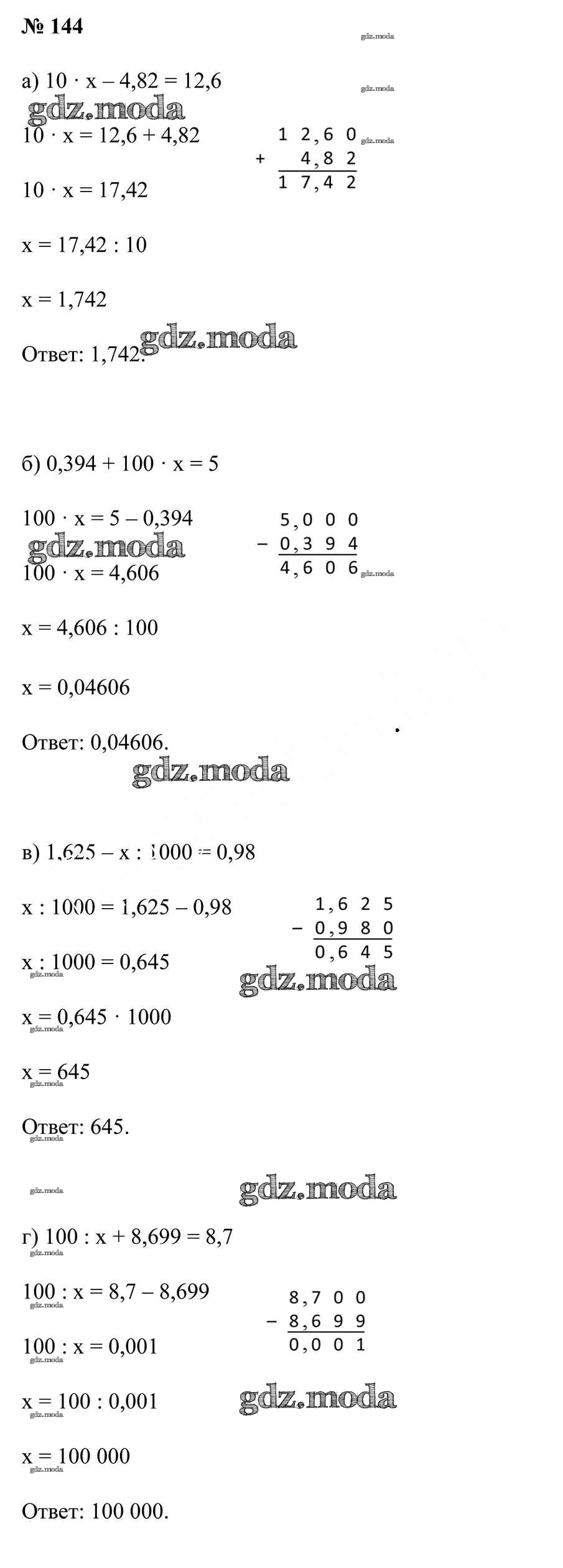 ОТВЕТ на задание № 144 Учебник по Математике 6 класс Герасимов