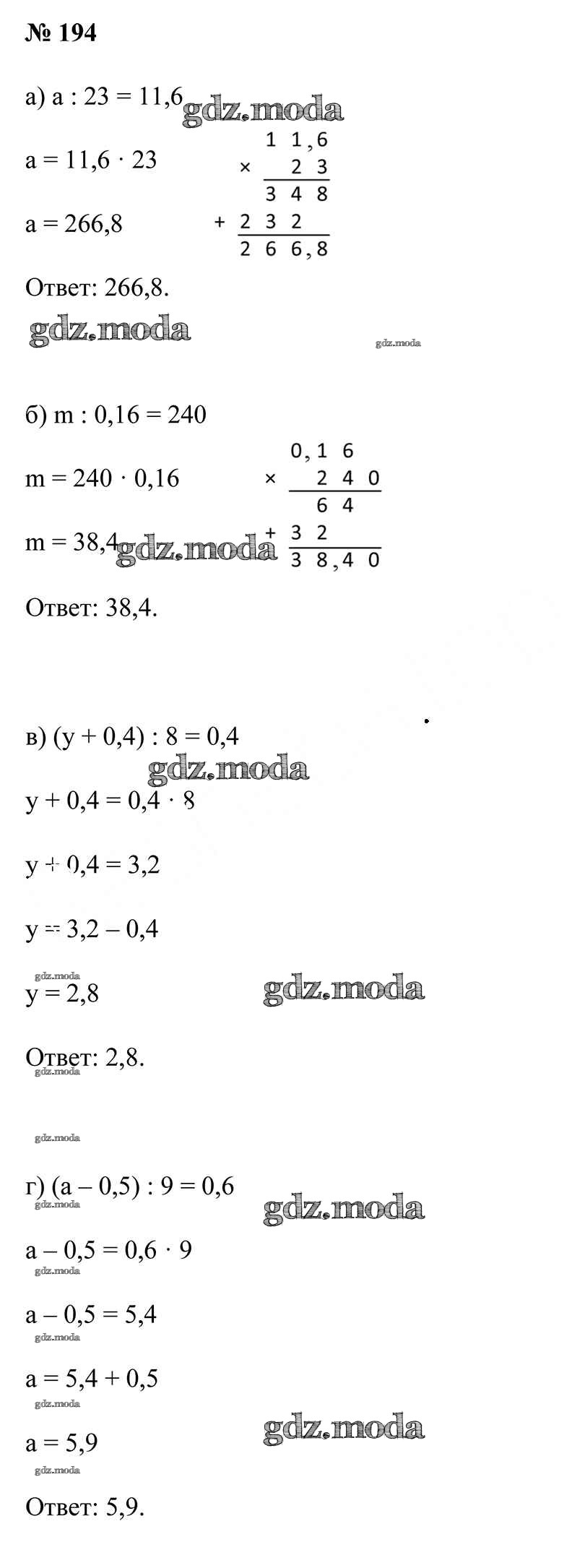 ГДЗ решение к заданию № 194 Математика 6 класс Герасимов В.Д. Образование и воспитание 2018 бесплатно на гдз.мода!