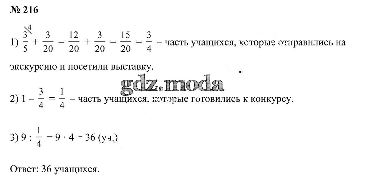 ГДЗ решение к заданию № 216 Математика 6 класс Герасимов В.Д. Образование и воспитание 2018 бесплатно на гдз.мода!