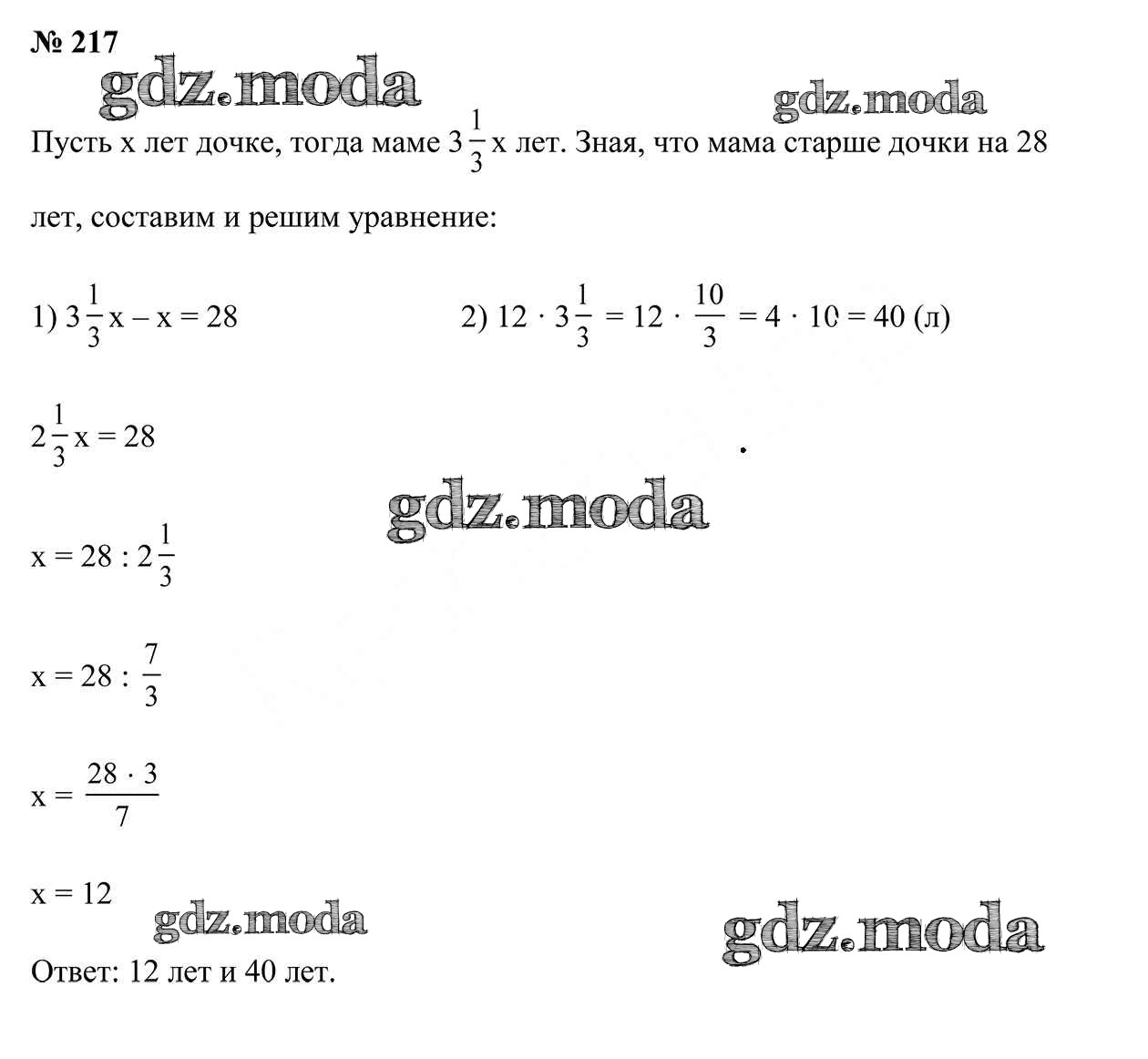 ОТВЕТ на задание № 217 Учебник по Математике 6 класс Герасимов