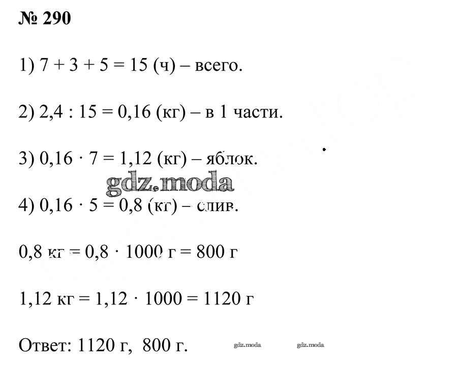 ОТВЕТ на задание № 290 Учебник по Математике 6 класс Герасимов