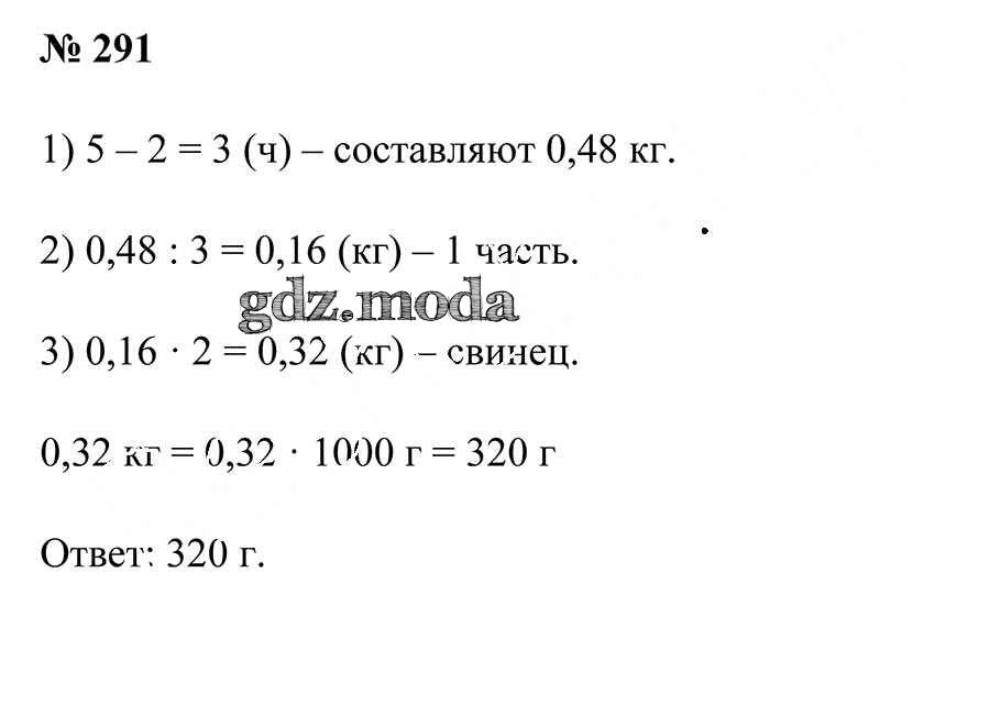 ОТВЕТ на задание № 291 Учебник по Математике 6 класс Герасимов