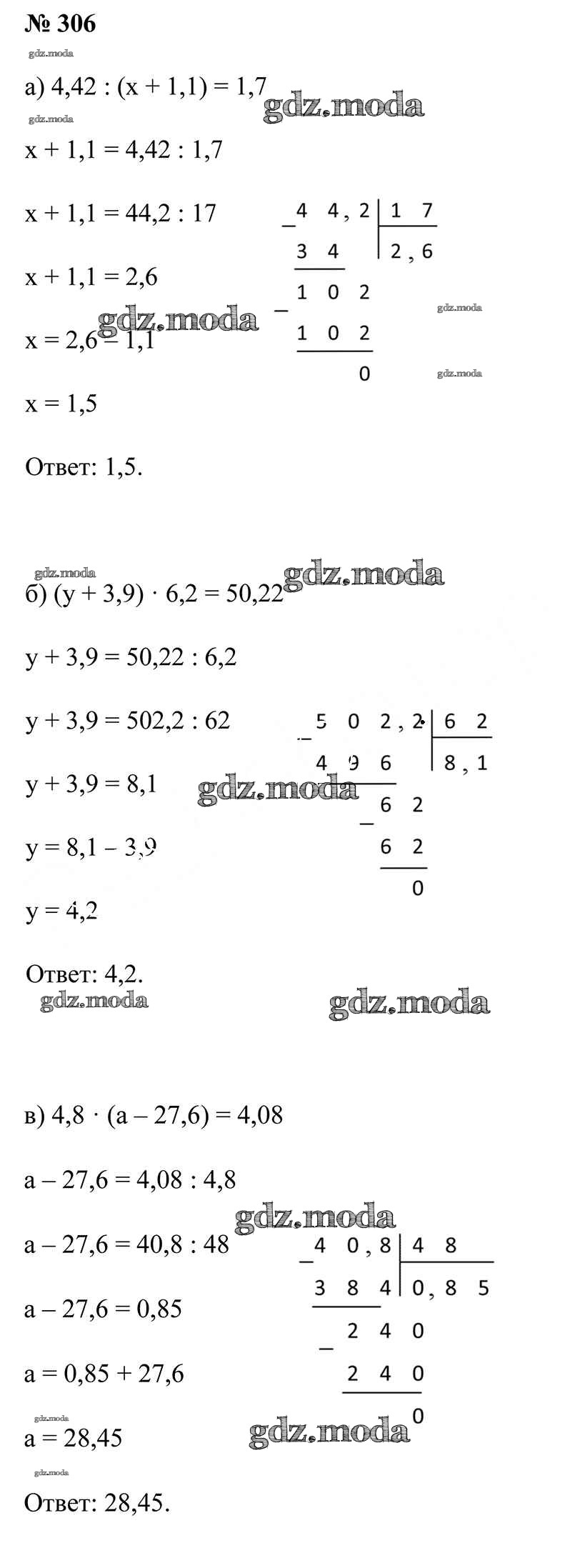 ОТВЕТ на задание № 306 Учебник по Математике 6 класс Герасимов