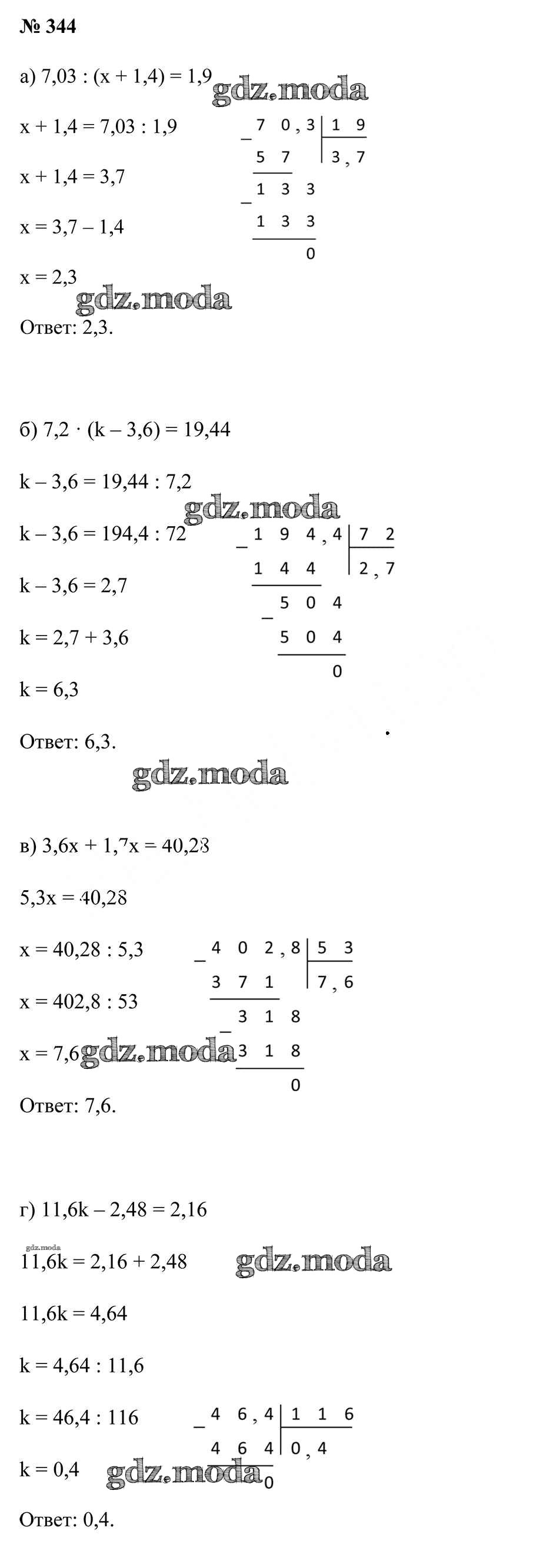 ОТВЕТ на задание № 344 Учебник по Математике 6 класс Герасимов