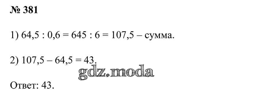 ОТВЕТ на задание № 381 Учебник по Математике 6 класс Герасимов