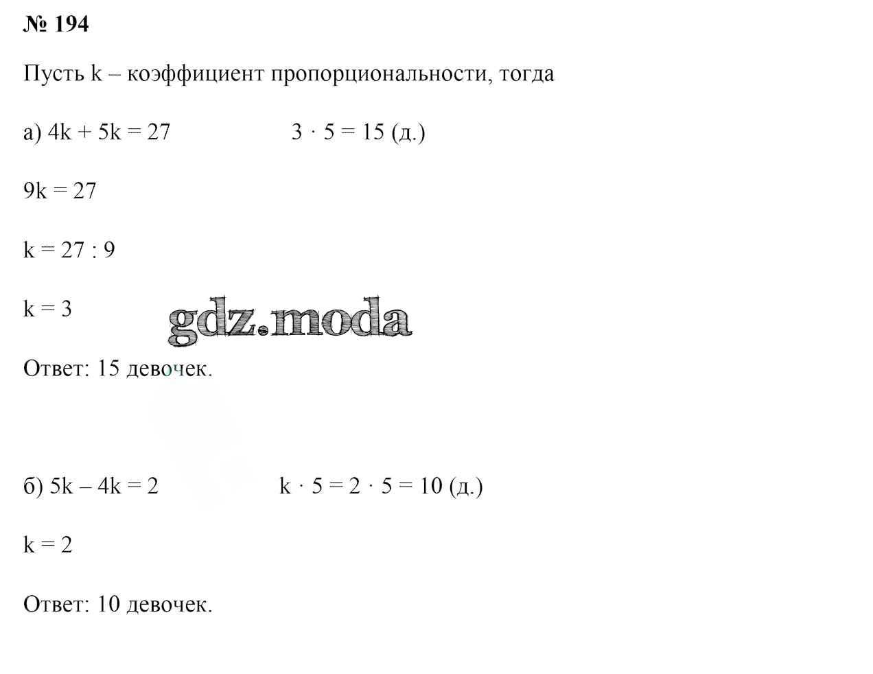 ОТВЕТ на задание № 194 Учебник по Математике 6 класс Герасимов