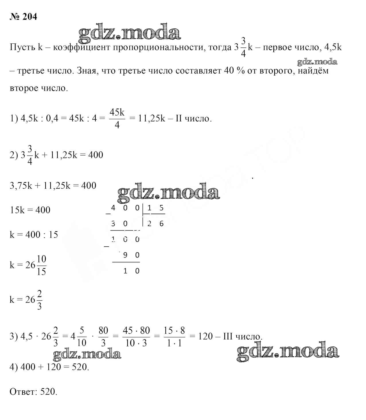 ГДЗ решение к заданию № 204 Математика 6 класс Герасимов В.Д. Образование и воспитание 2018 бесплатно на гдз.мода!
