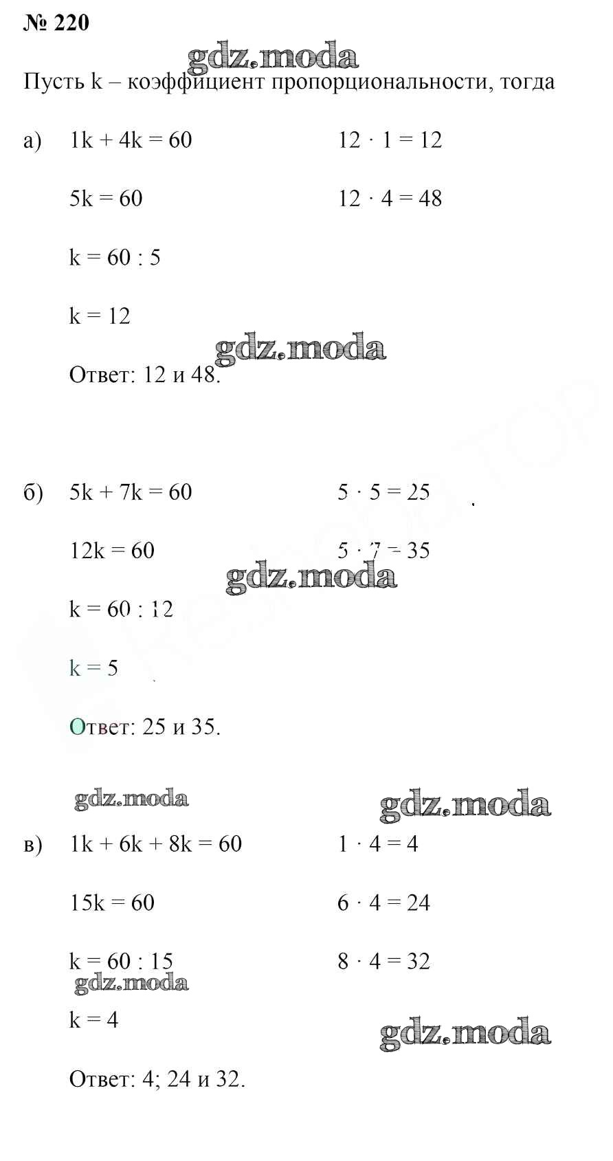 ОТВЕТ на задание № 220 Учебник по Математике 6 класс Герасимов