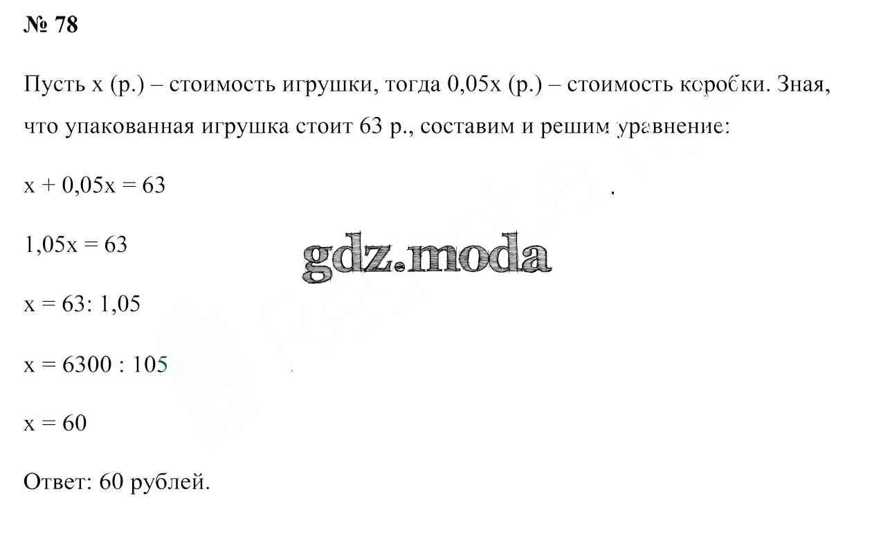 ОТВЕТ на задание № 78 Учебник по Математике 6 класс Герасимов