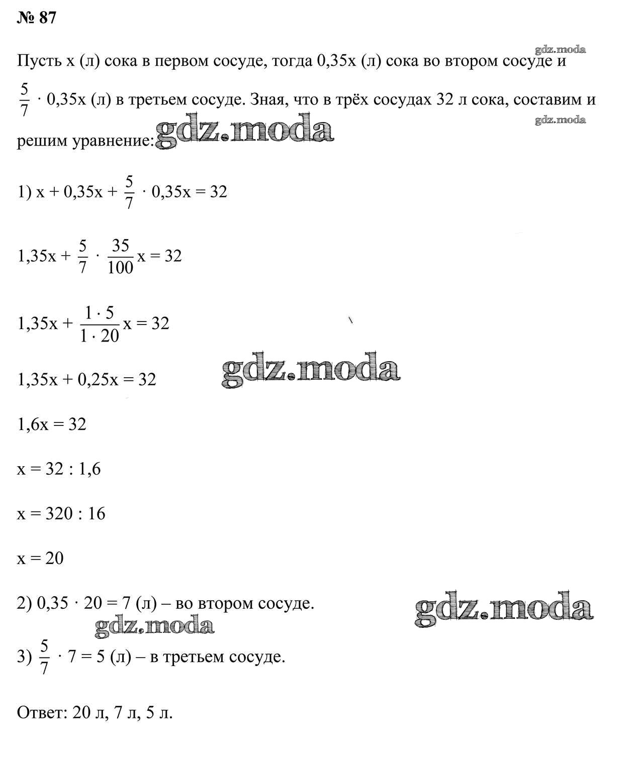 ОТВЕТ на задание № 87 Учебник по Математике 6 класс Герасимов