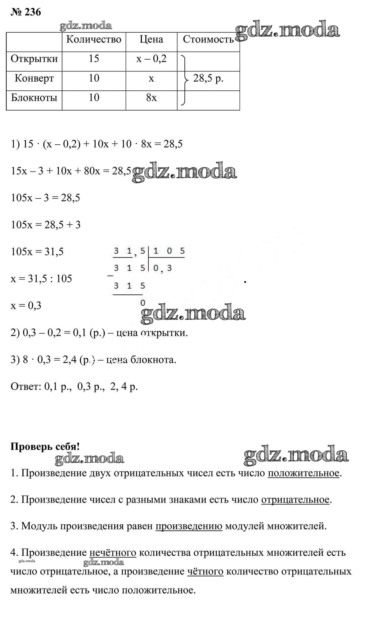 ОТВЕТ на задание № 236 Учебник по Математике 6 класс Герасимов