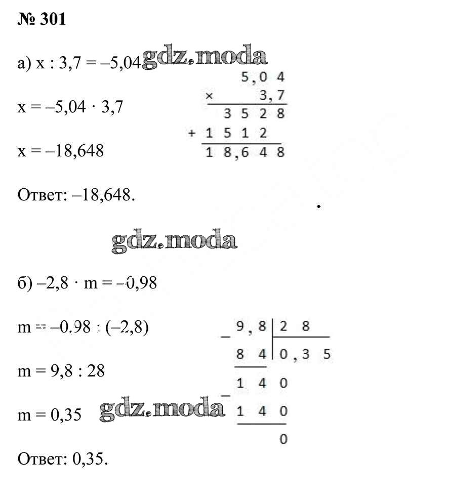ОТВЕТ на задание № 301 Учебник по Математике 6 класс Герасимов