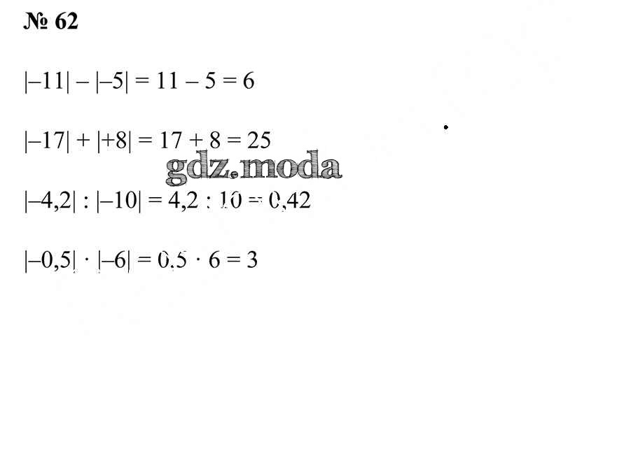 ГДЗ решение к заданию № 62 Математика 6 класс Герасимов В.Д. Образование и воспитание 2018 бесплатно на гдз.мода!