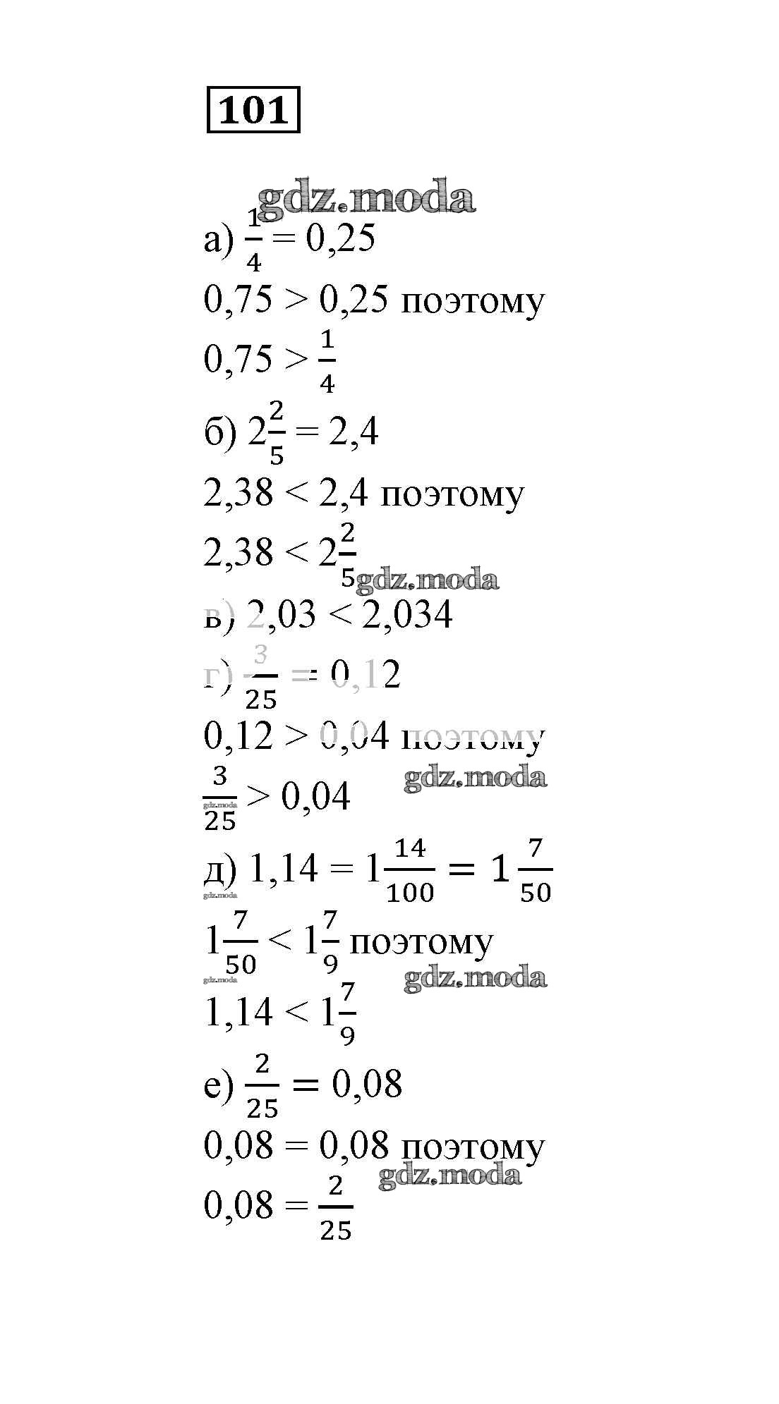 ОТВЕТ на задание № 101 Учебник по Математике 6 класс Истомина