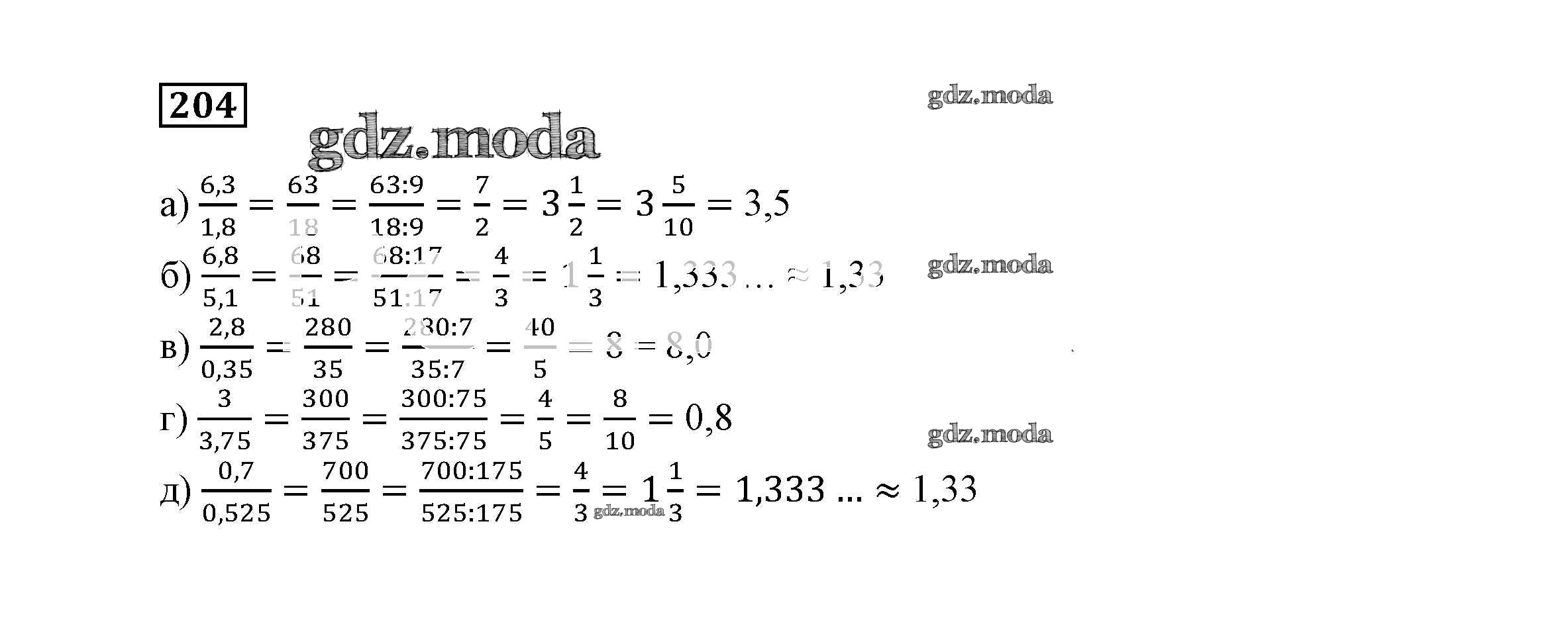 ОТВЕТ на задание № 204 Учебник по Математике 6 класс Истомина