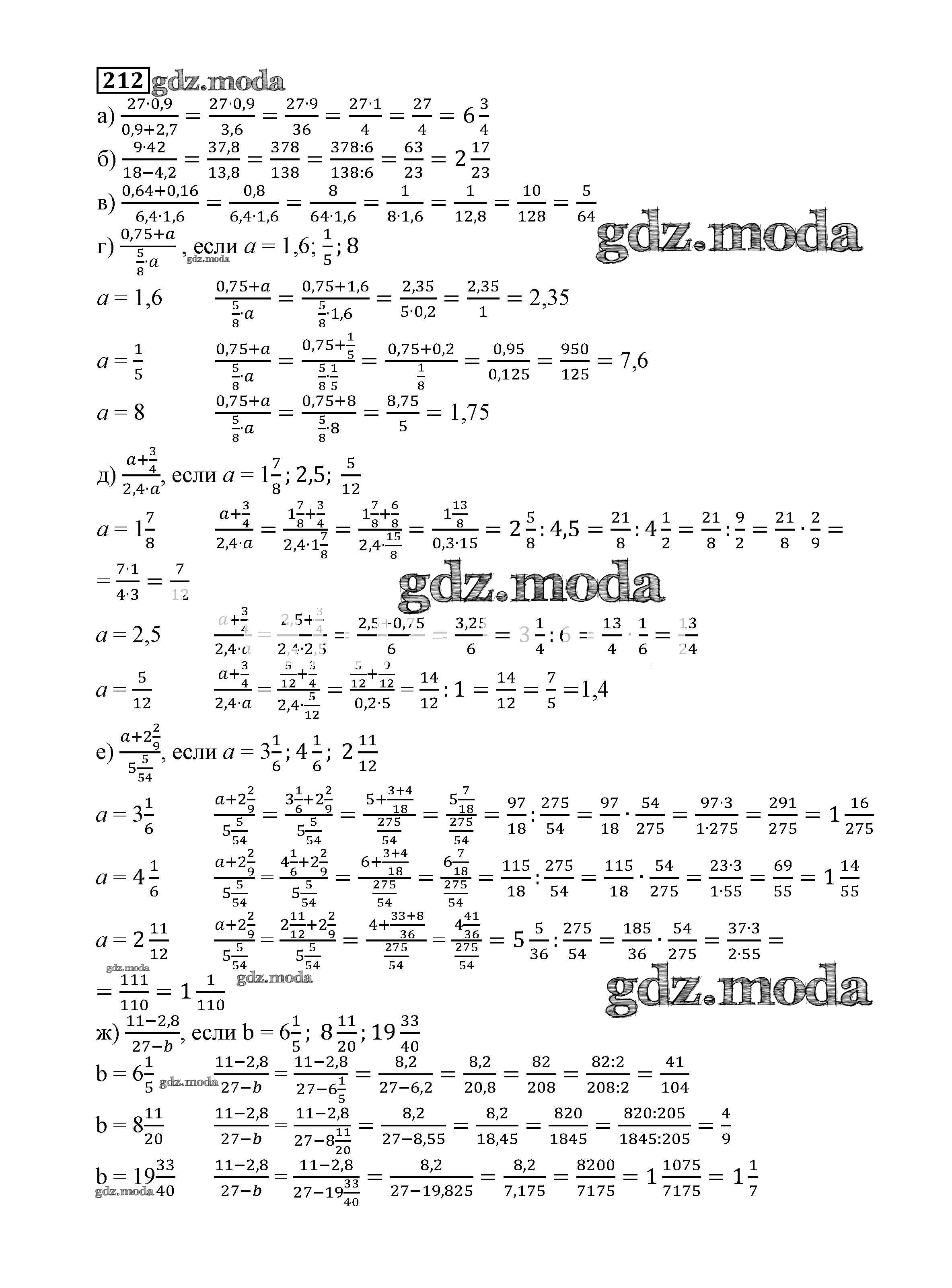 ОТВЕТ на задание № 212 Учебник по Математике 6 класс Истомина