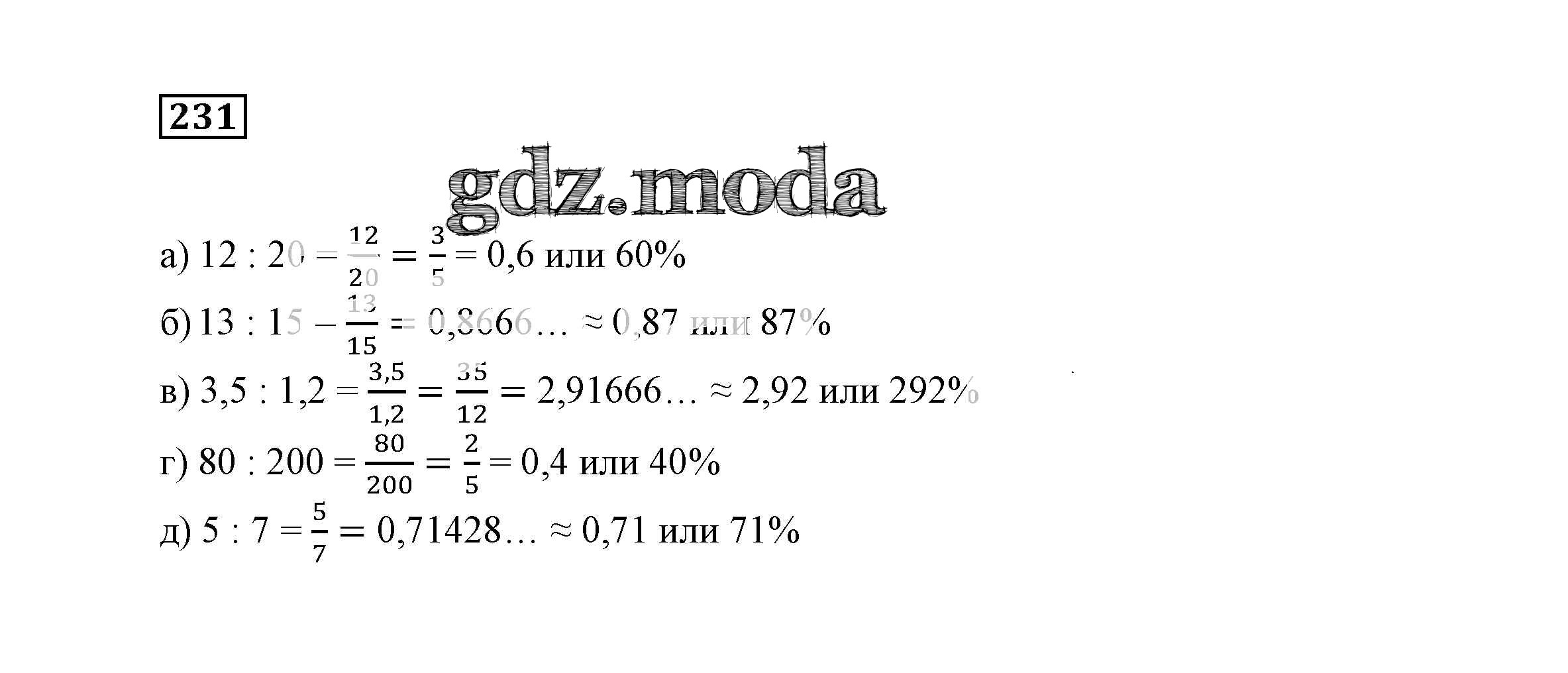 ГДЗ решение к заданию № 231 Математика 6 класс Истомина Н.Б. Ассоциация 21 век 2015 ФГОС бесплатно на гдз.мода!