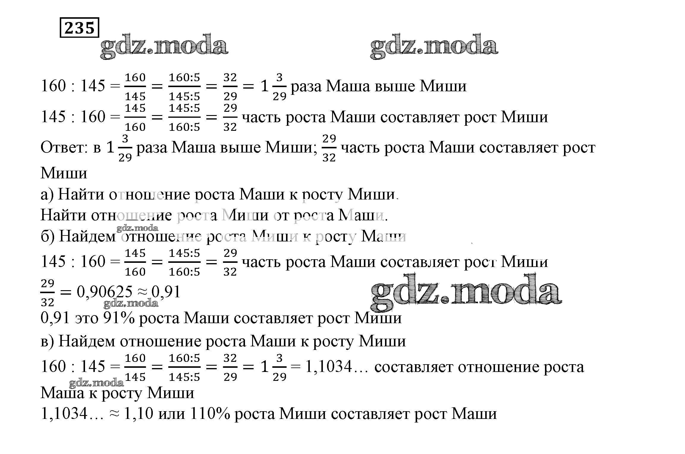 ГДЗ решение к заданию № 235 Математика 6 класс Истомина Н.Б. Ассоциация 21 век 2015 ФГОС бесплатно на гдз.мода!