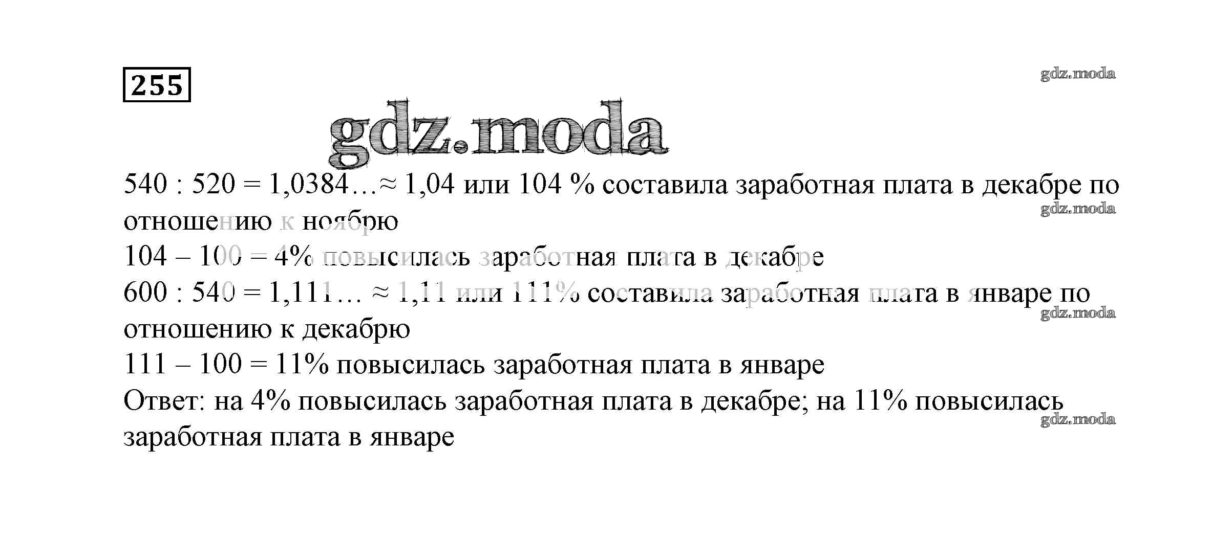 ОТВЕТ на задание № 255 Учебник по Математике 6 класс Истомина
