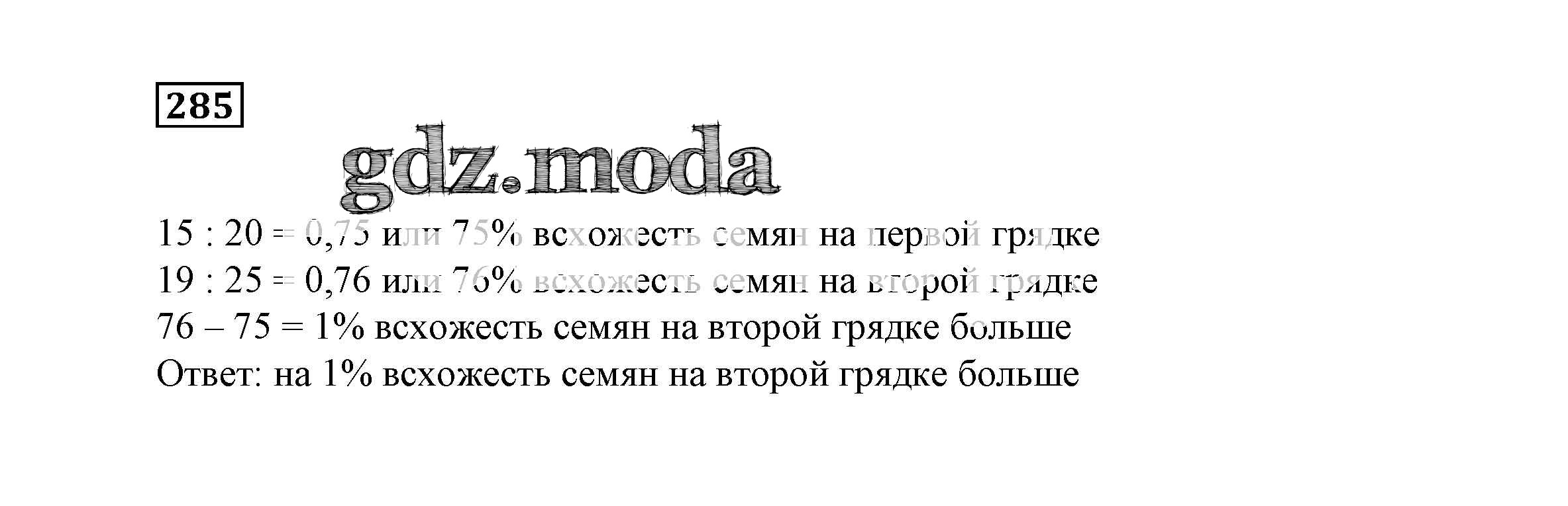 ОТВЕТ на задание № 285 Учебник по Математике 6 класс Истомина