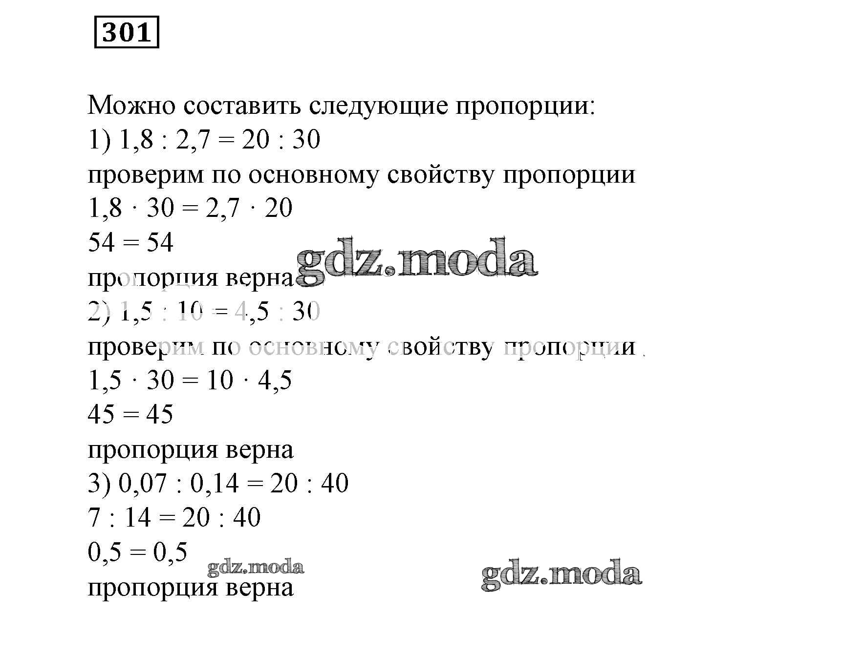 ОТВЕТ на задание № 301 Учебник по Математике 6 класс Истомина