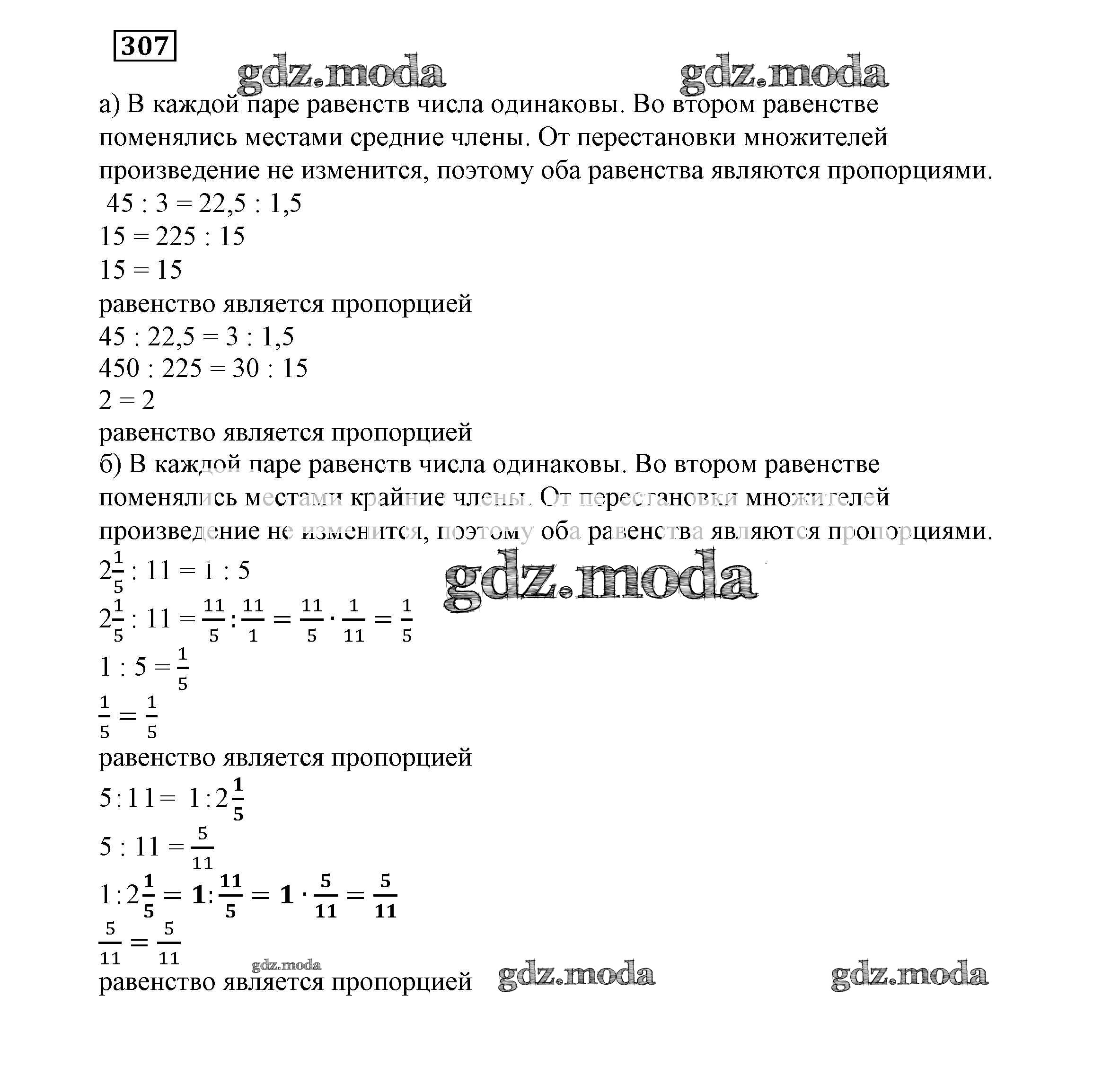 ОТВЕТ на задание № 307 Учебник по Математике 6 класс Истомина