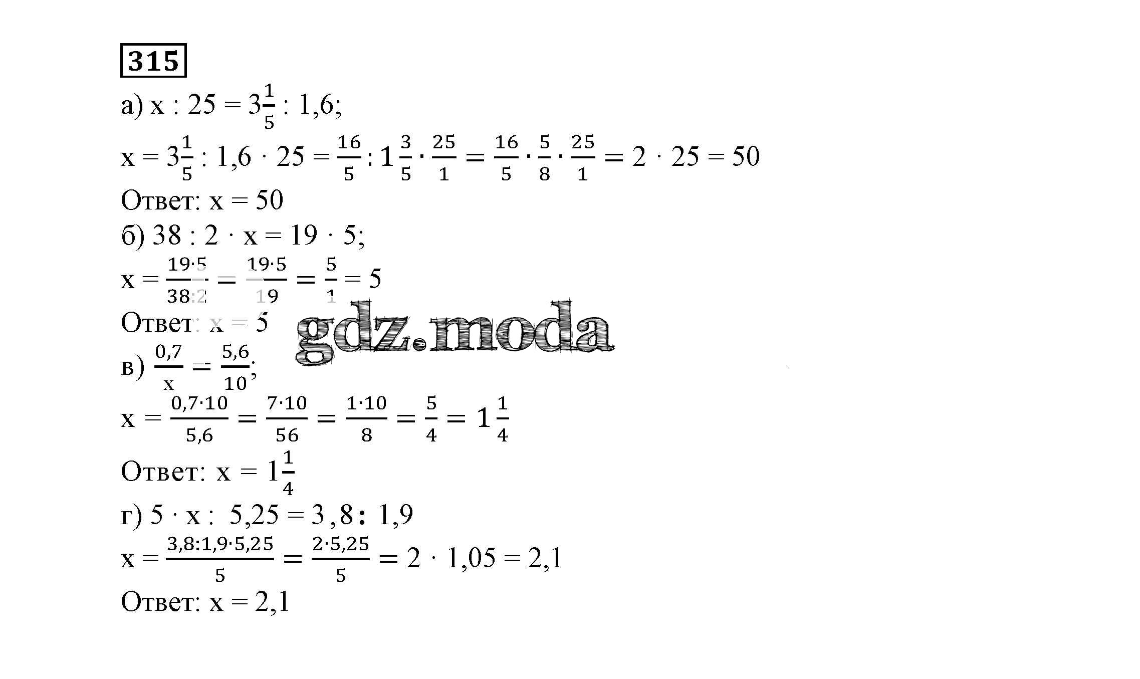 ГДЗ решение к заданию № 315 Математика 6 класс Истомина Н.Б. Ассоциация 21 век 2015 ФГОС бесплатно на гдз.мода!