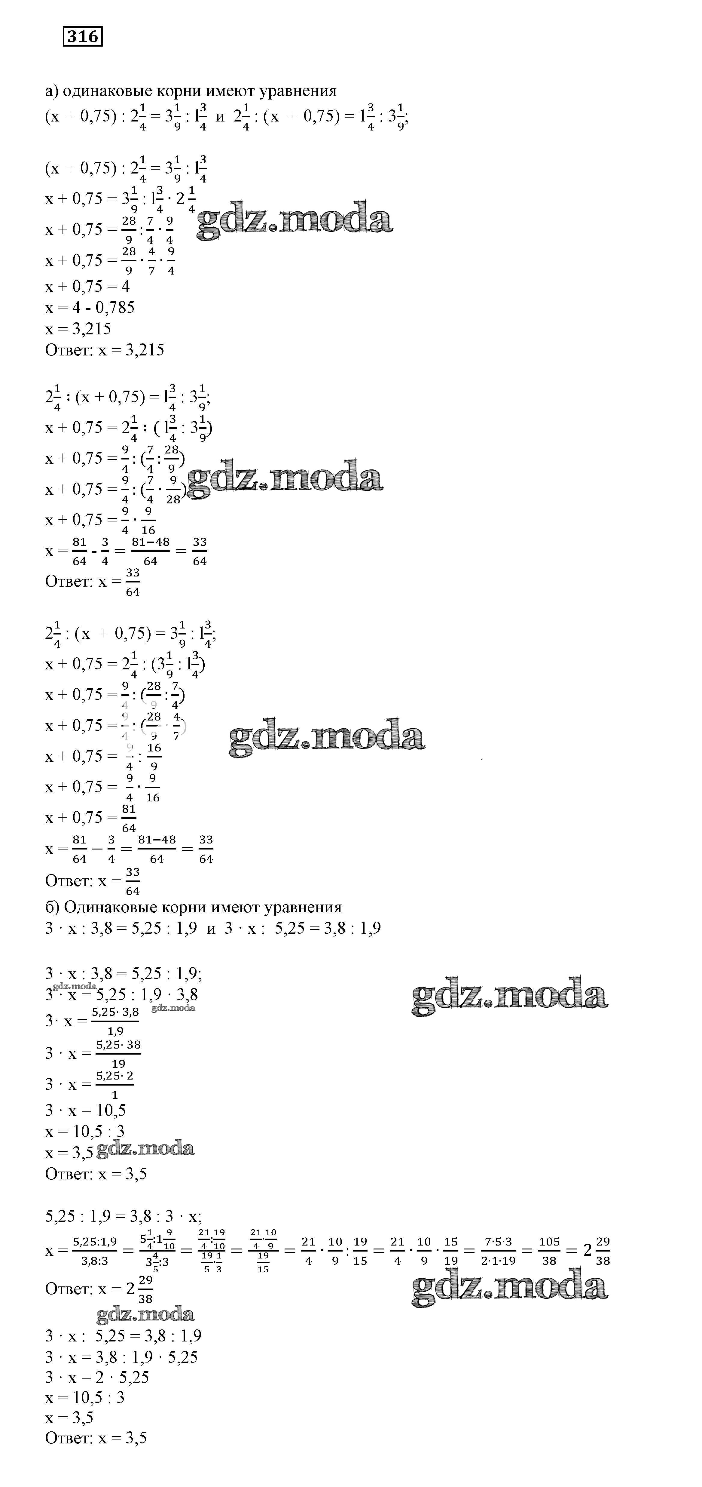 ОТВЕТ на задание № 316 Учебник по Математике 6 класс Истомина