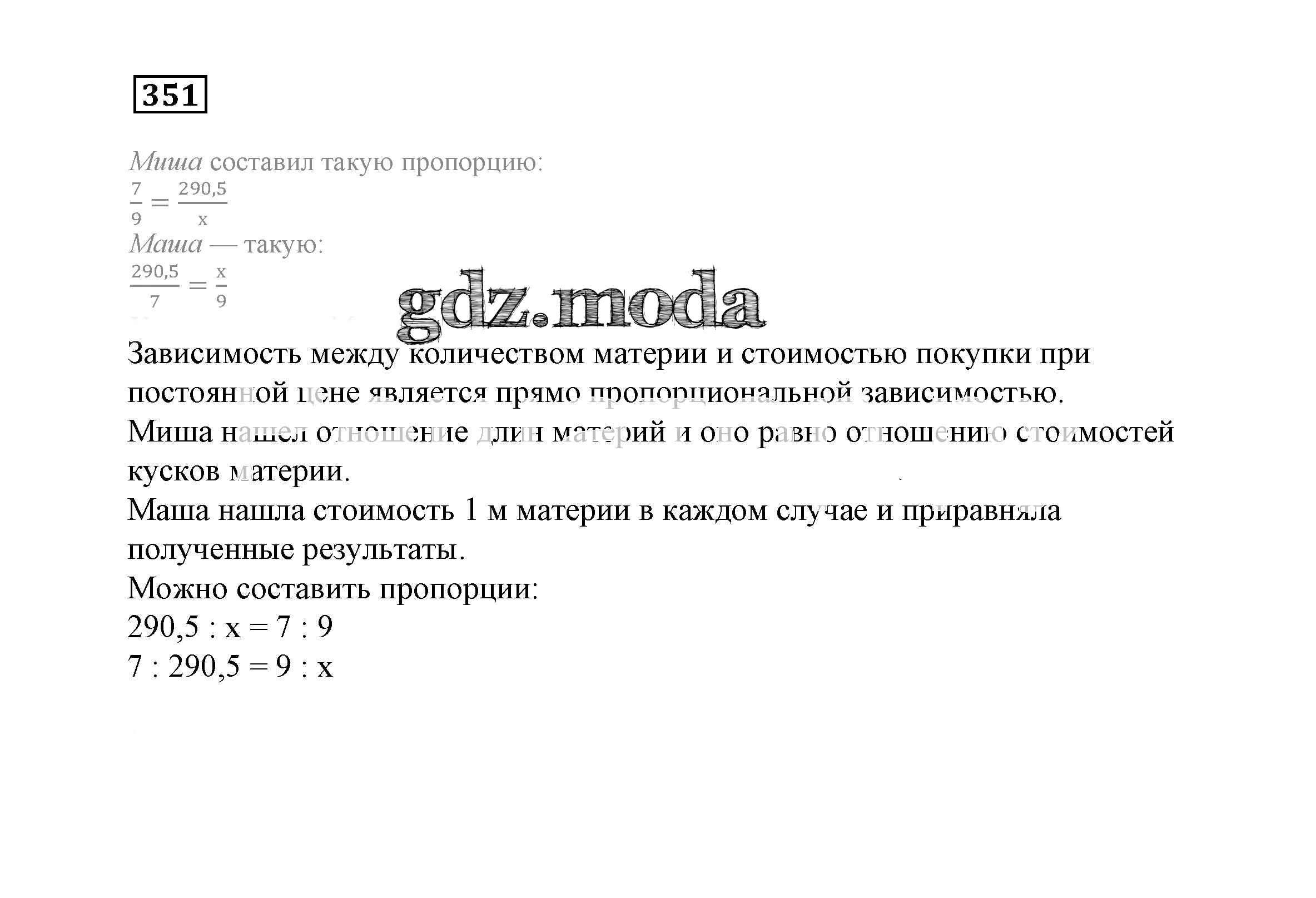 ОТВЕТ на задание № 351 Учебник по Математике 6 класс Истомина