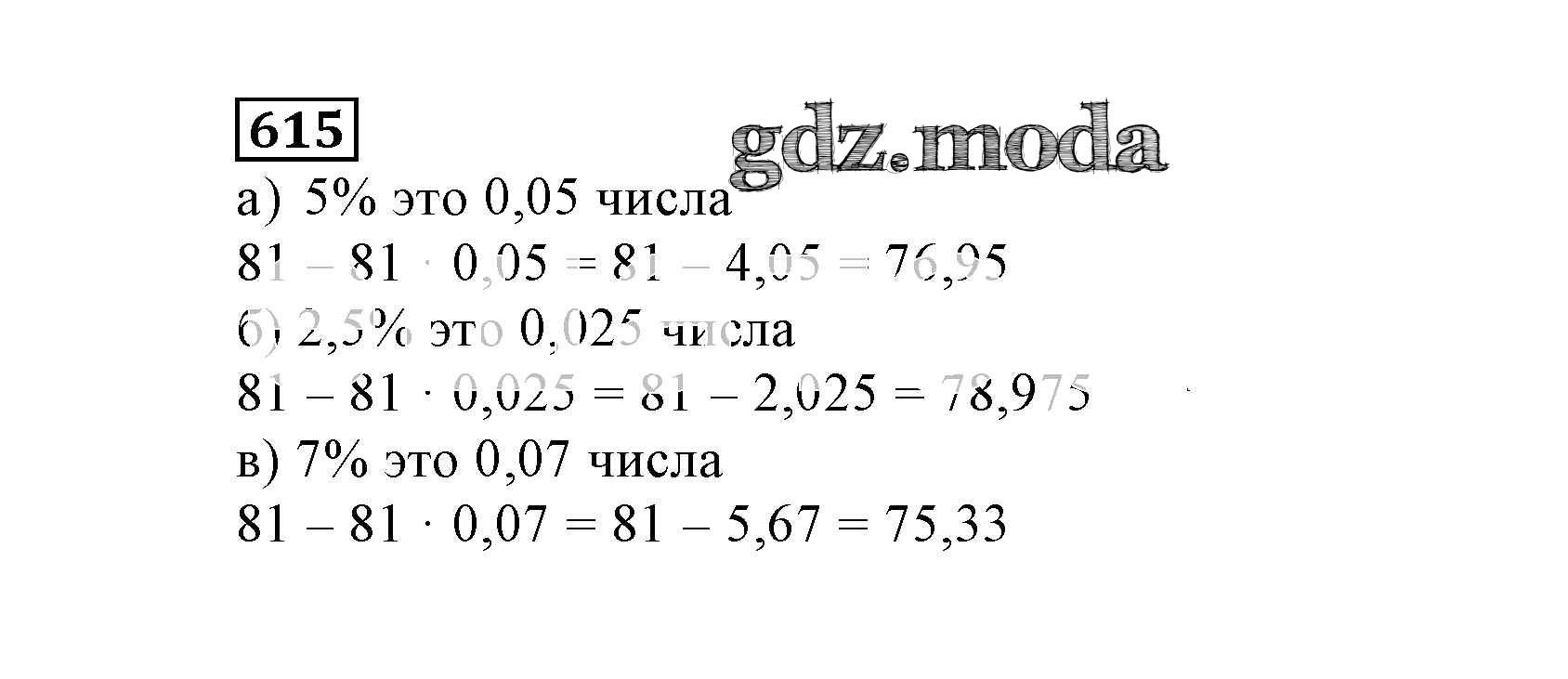ОТВЕТ на задание № 615 Учебник по Математике 6 класс Истомина