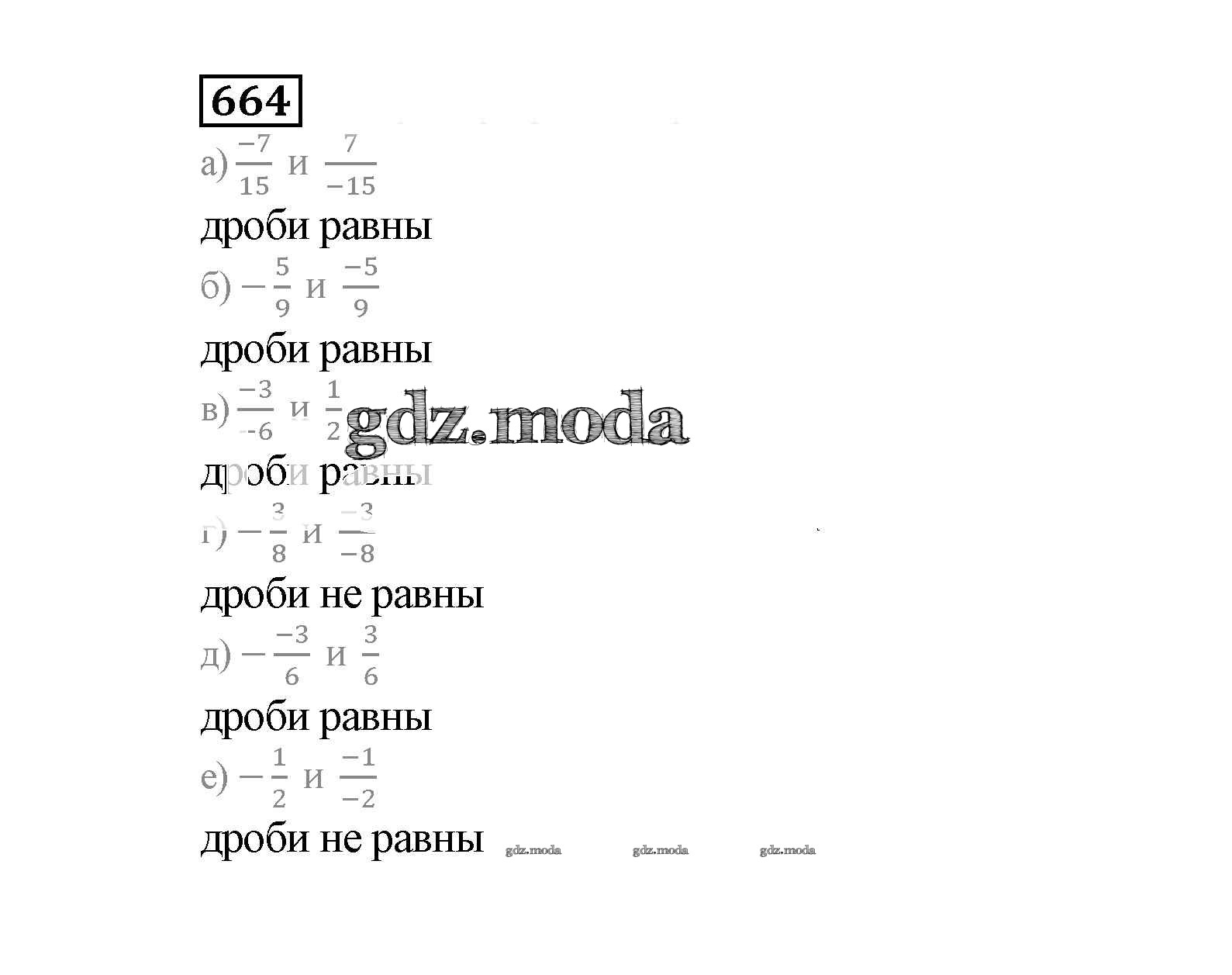 ОТВЕТ на задание № 664 Учебник по Математике 6 класс Истомина
