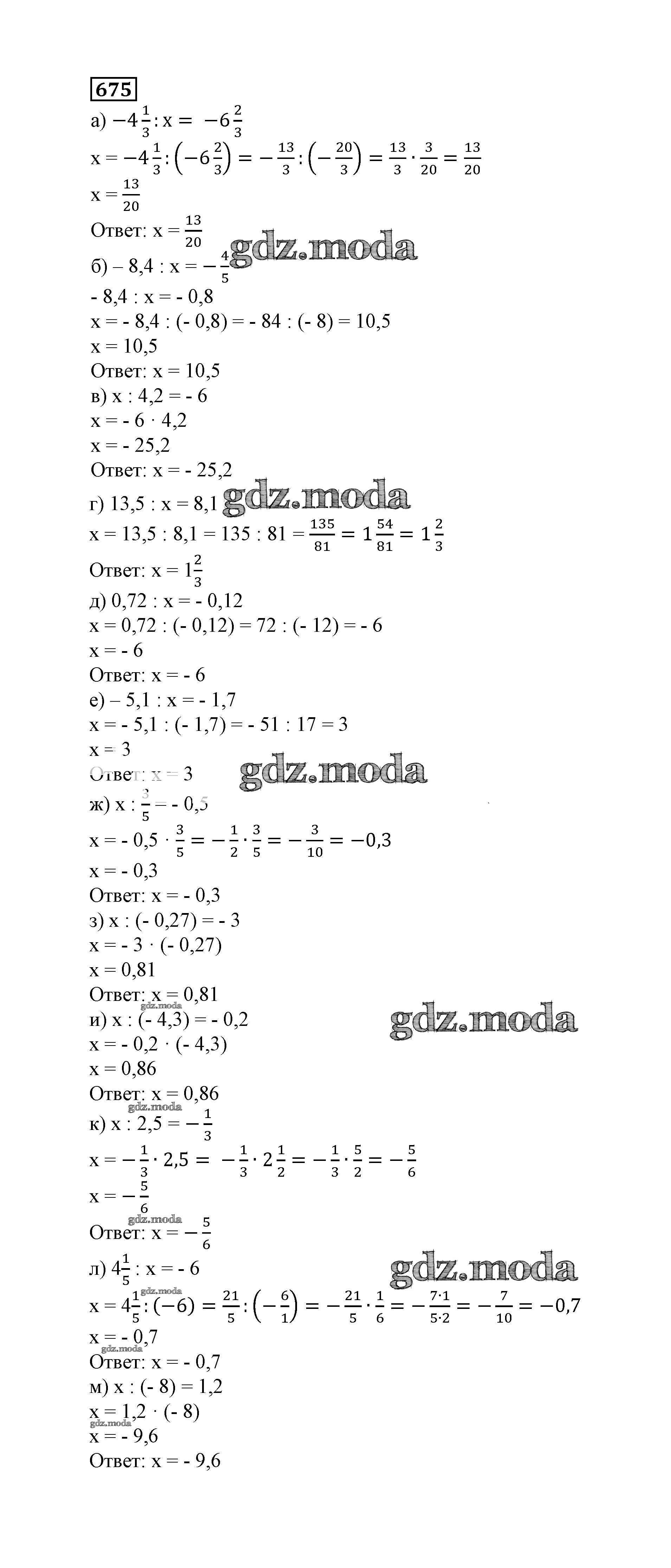 ОТВЕТ на задание № 675 Учебник по Математике 6 класс Истомина