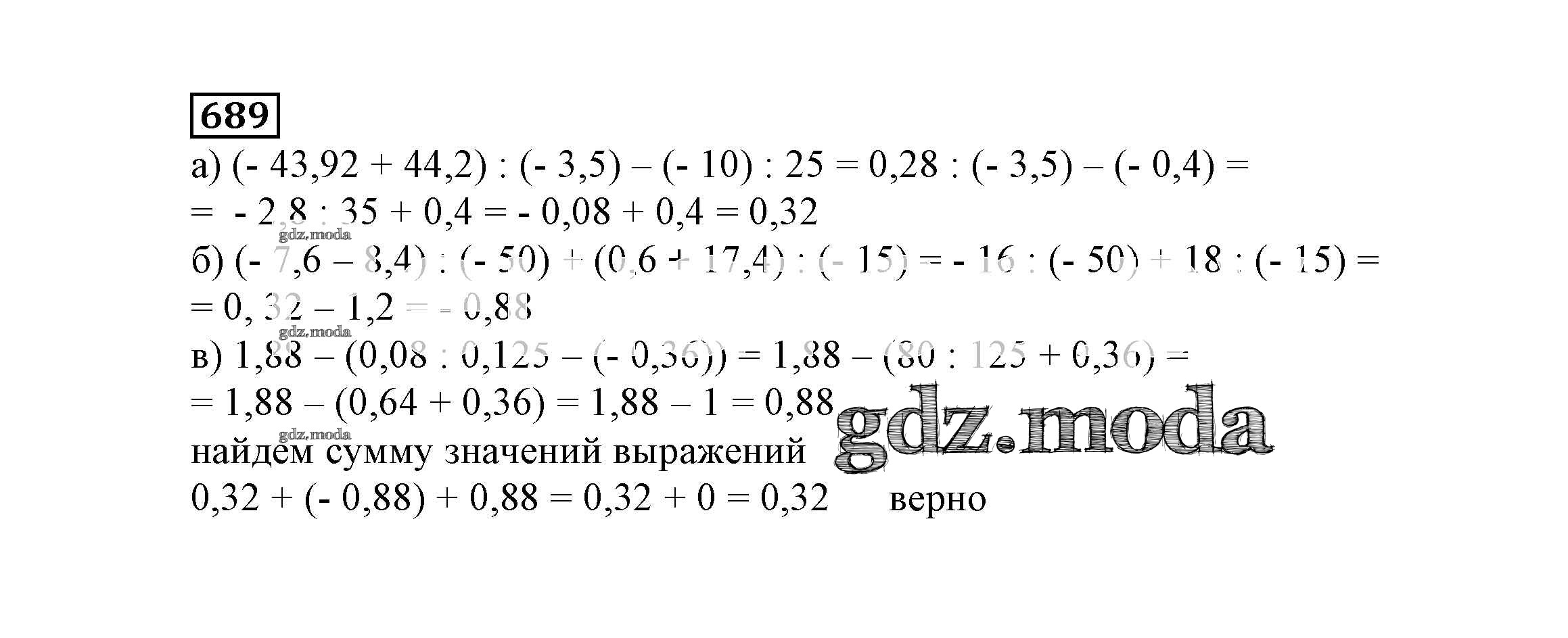 ОТВЕТ на задание № 689 Учебник по Математике 6 класс Истомина
