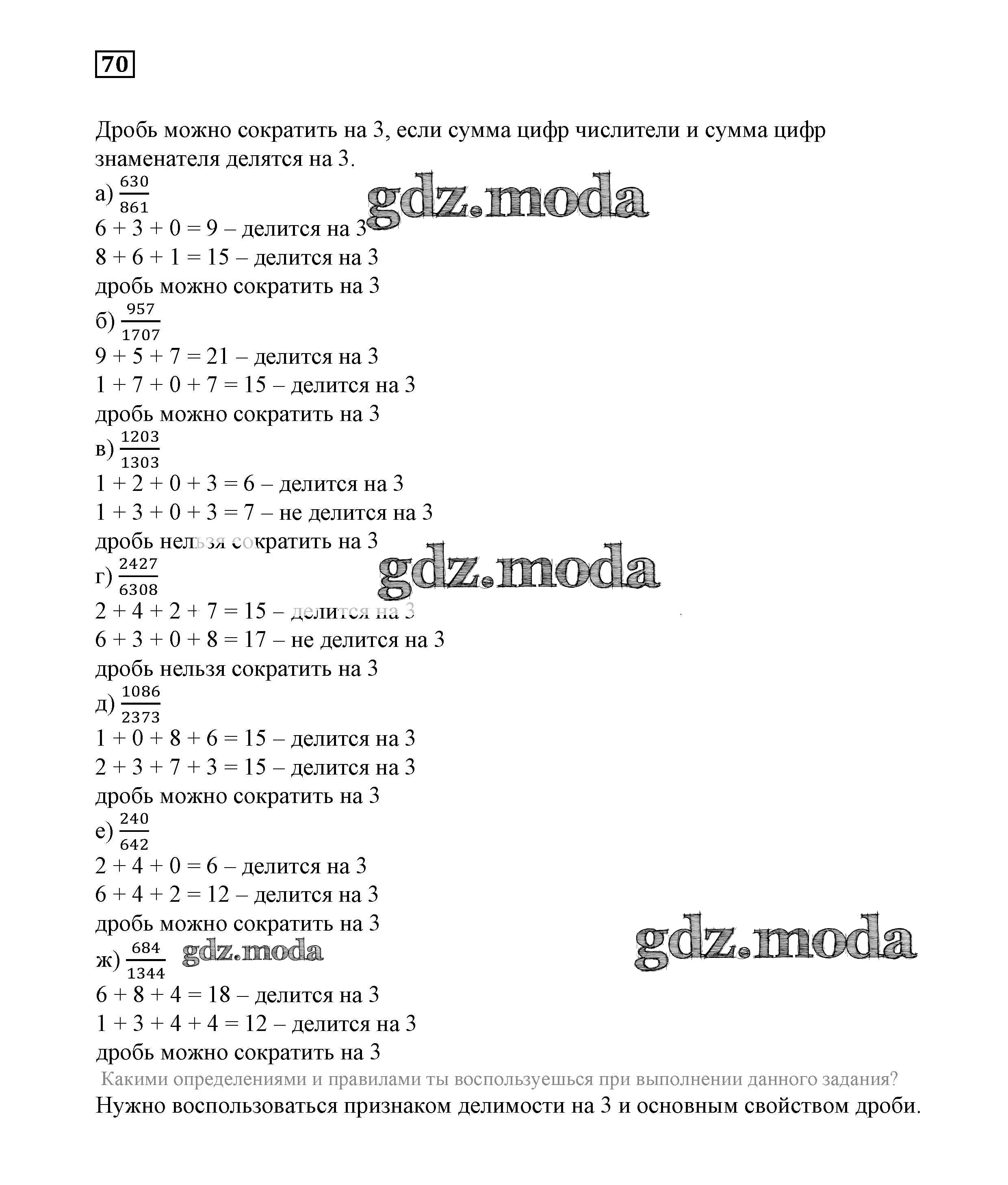 ОТВЕТ на задание № 70 Учебник по Математике 6 класс Истомина