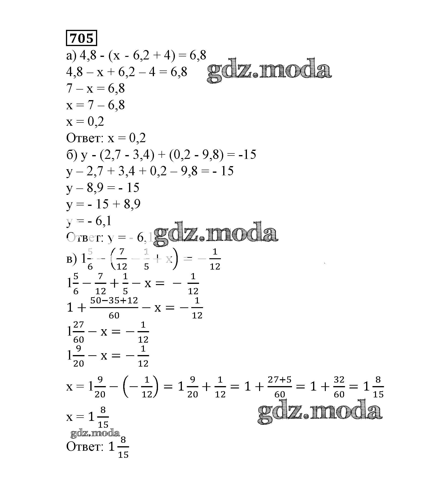 ОТВЕТ на задание № 705 Учебник по Математике 6 класс Истомина