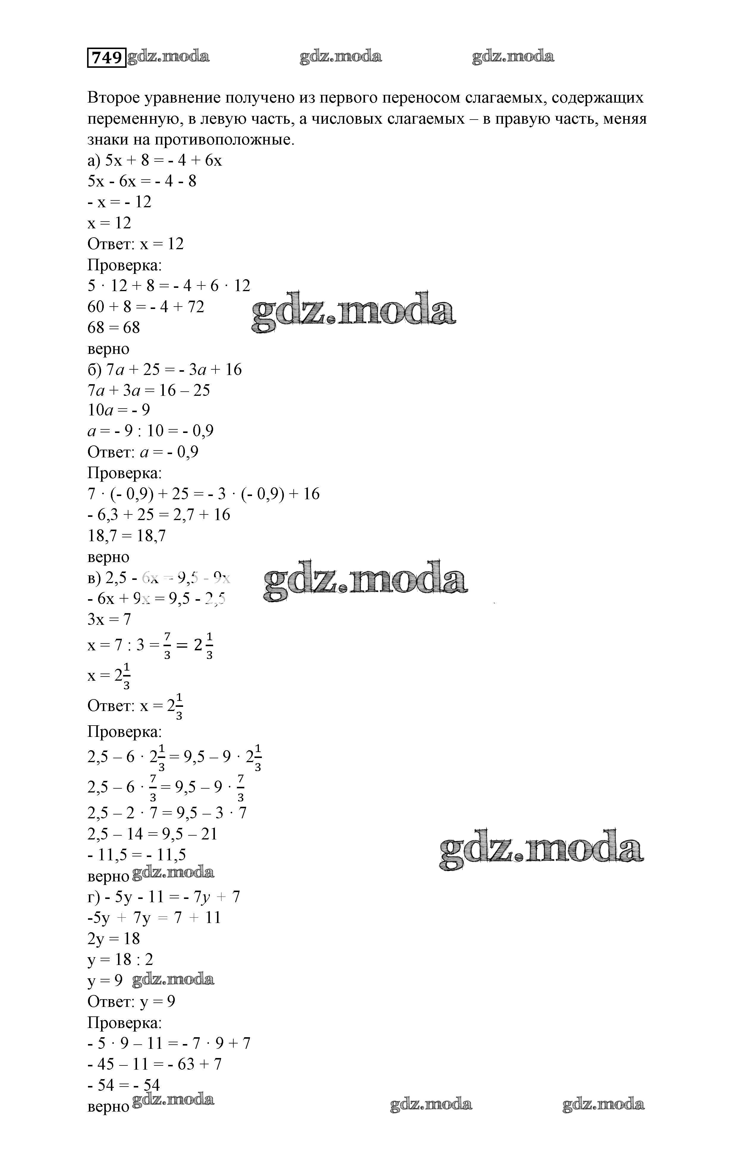 ОТВЕТ на задание № 749 Учебник по Математике 6 класс Истомина