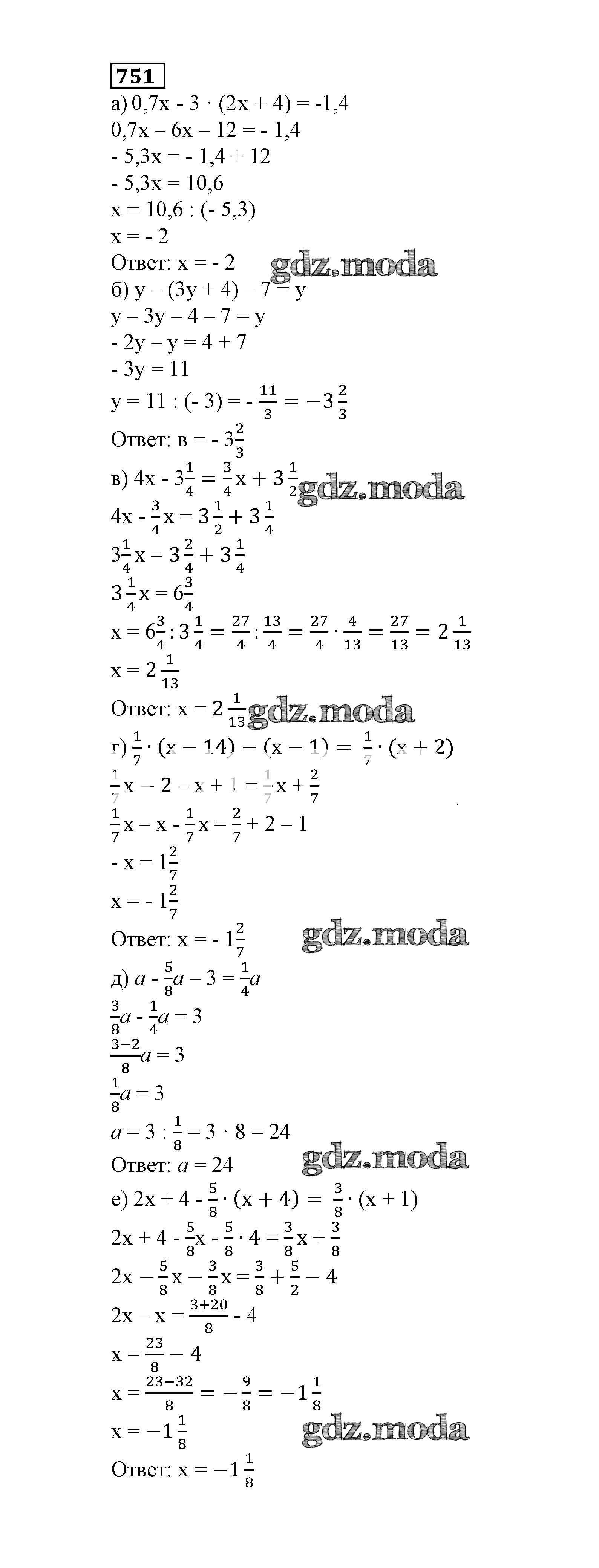ОТВЕТ на задание № 751 Учебник по Математике 6 класс Истомина
