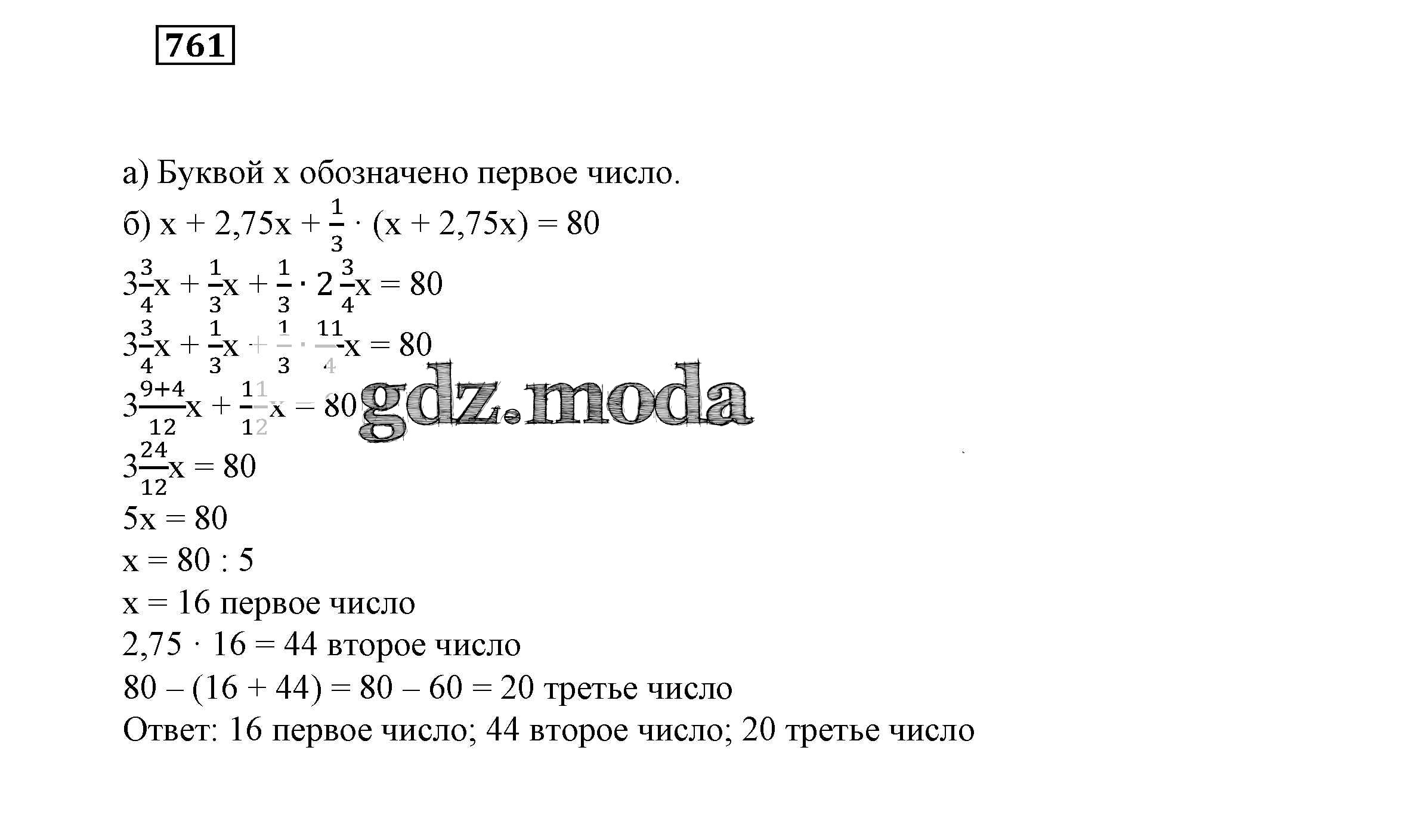 ОТВЕТ на задание № 761 Учебник по Математике 6 класс Истомина