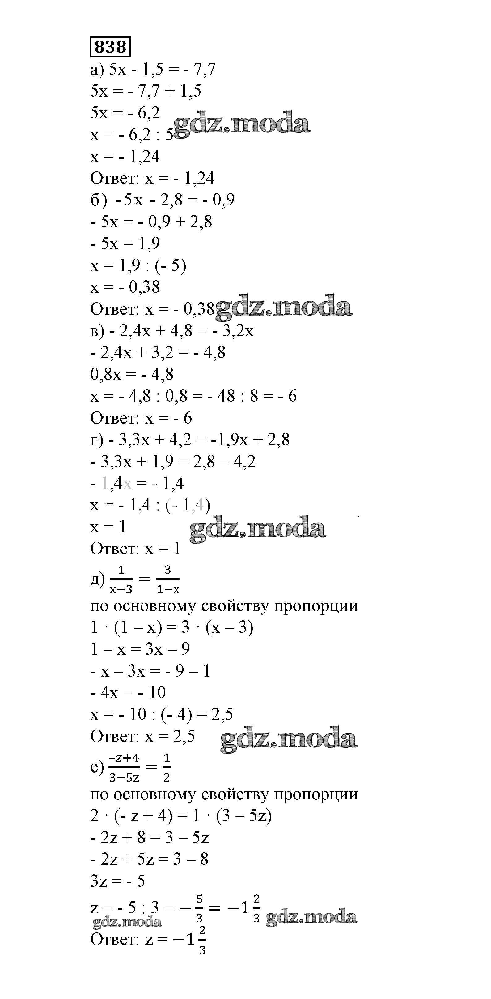 ОТВЕТ на задание № 838 Учебник по Математике 6 класс Истомина