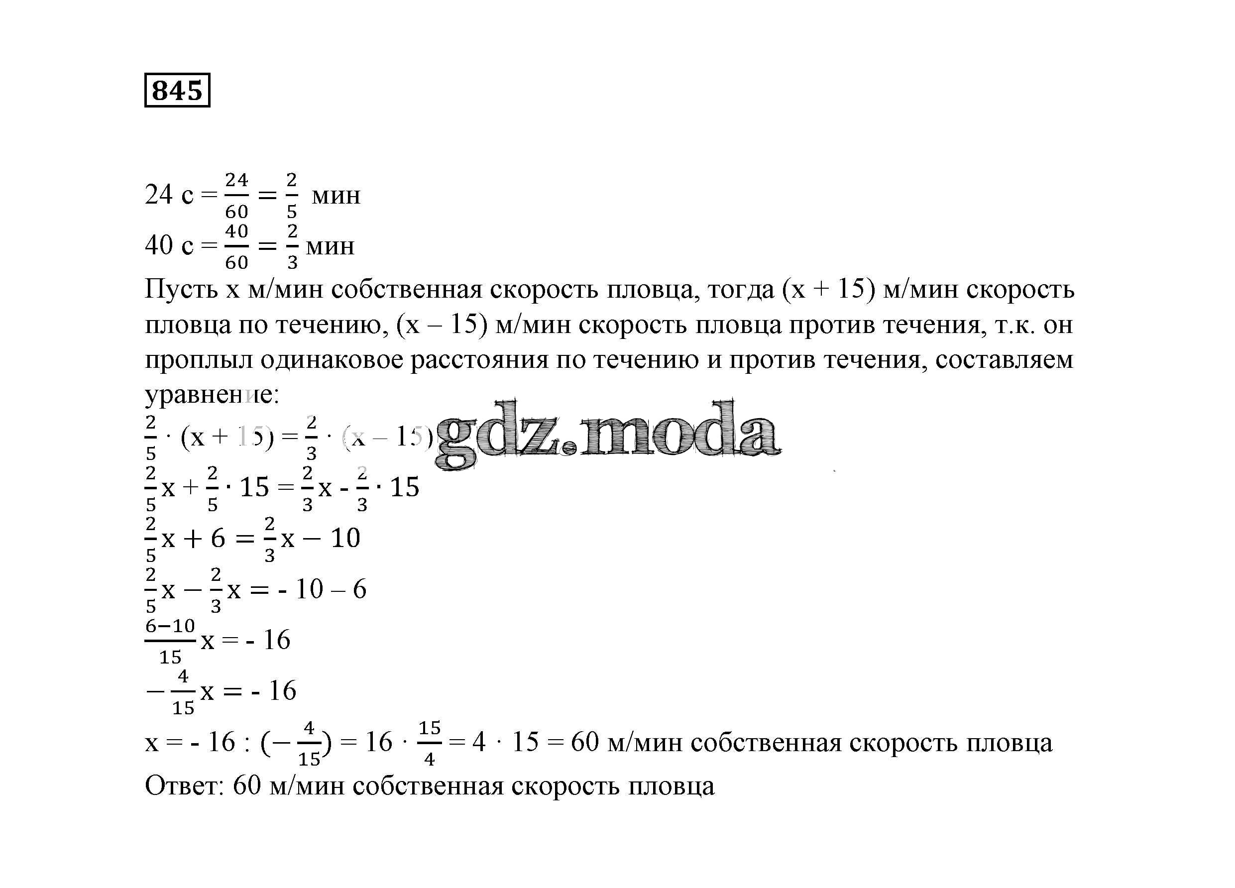 ОТВЕТ на задание № 845 Учебник по Математике 6 класс Истомина