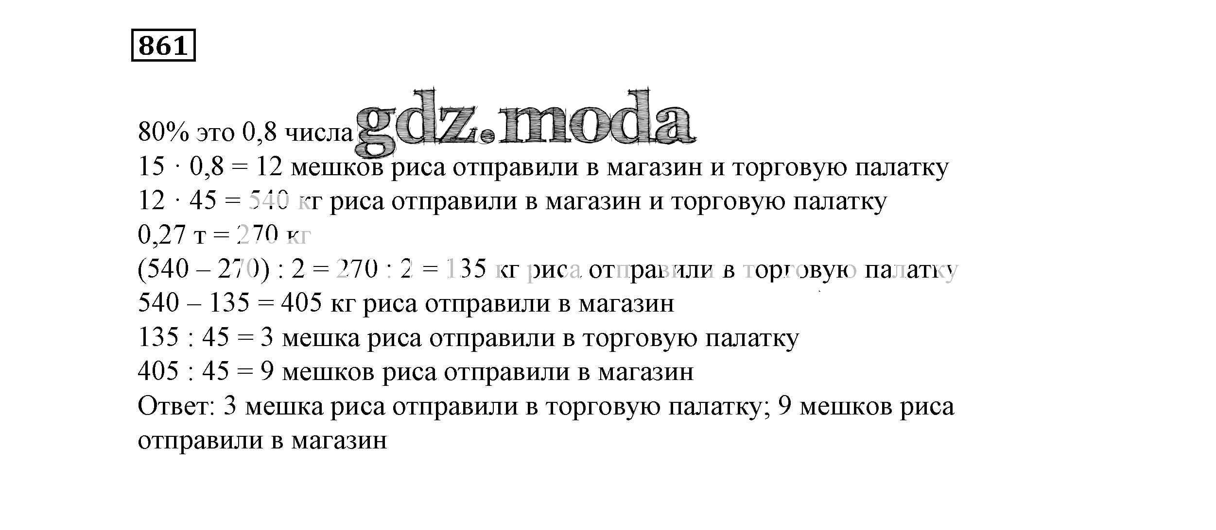 ОТВЕТ на задание № 861 Учебник по Математике 6 класс Истомина