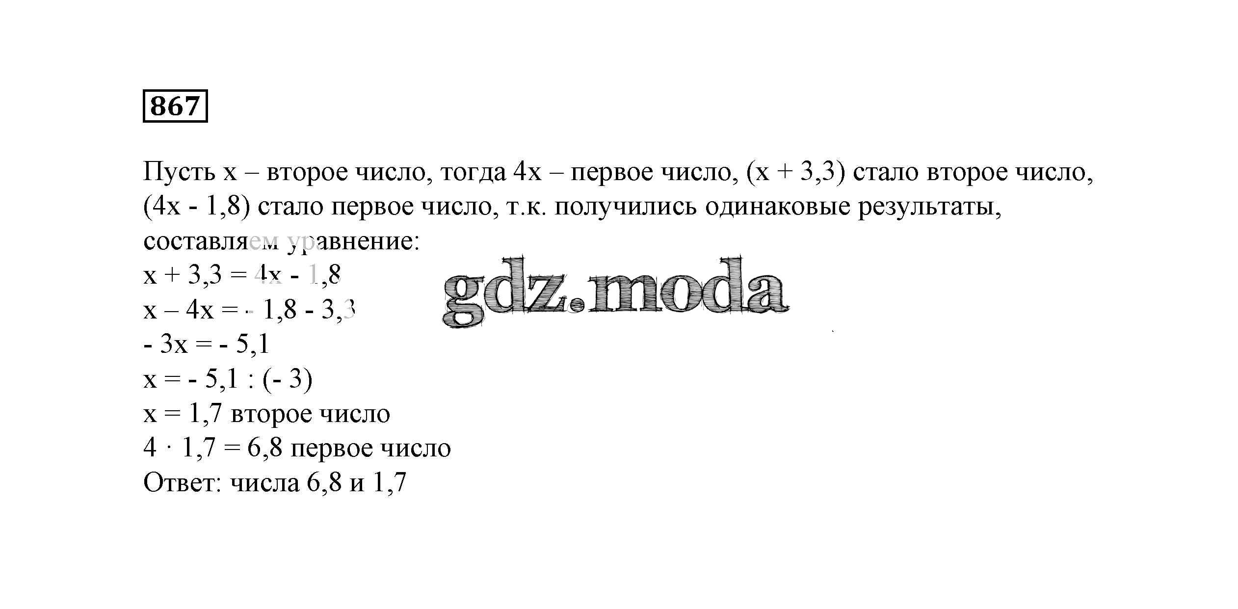 ОТВЕТ на задание № 867 Учебник по Математике 6 класс Истомина