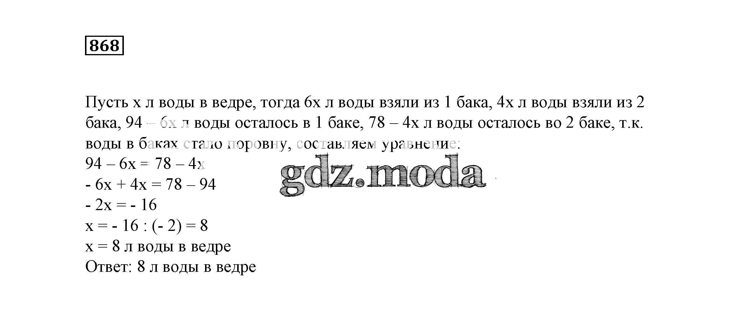 ОТВЕТ на задание № 868 Учебник по Математике 6 класс Истомина