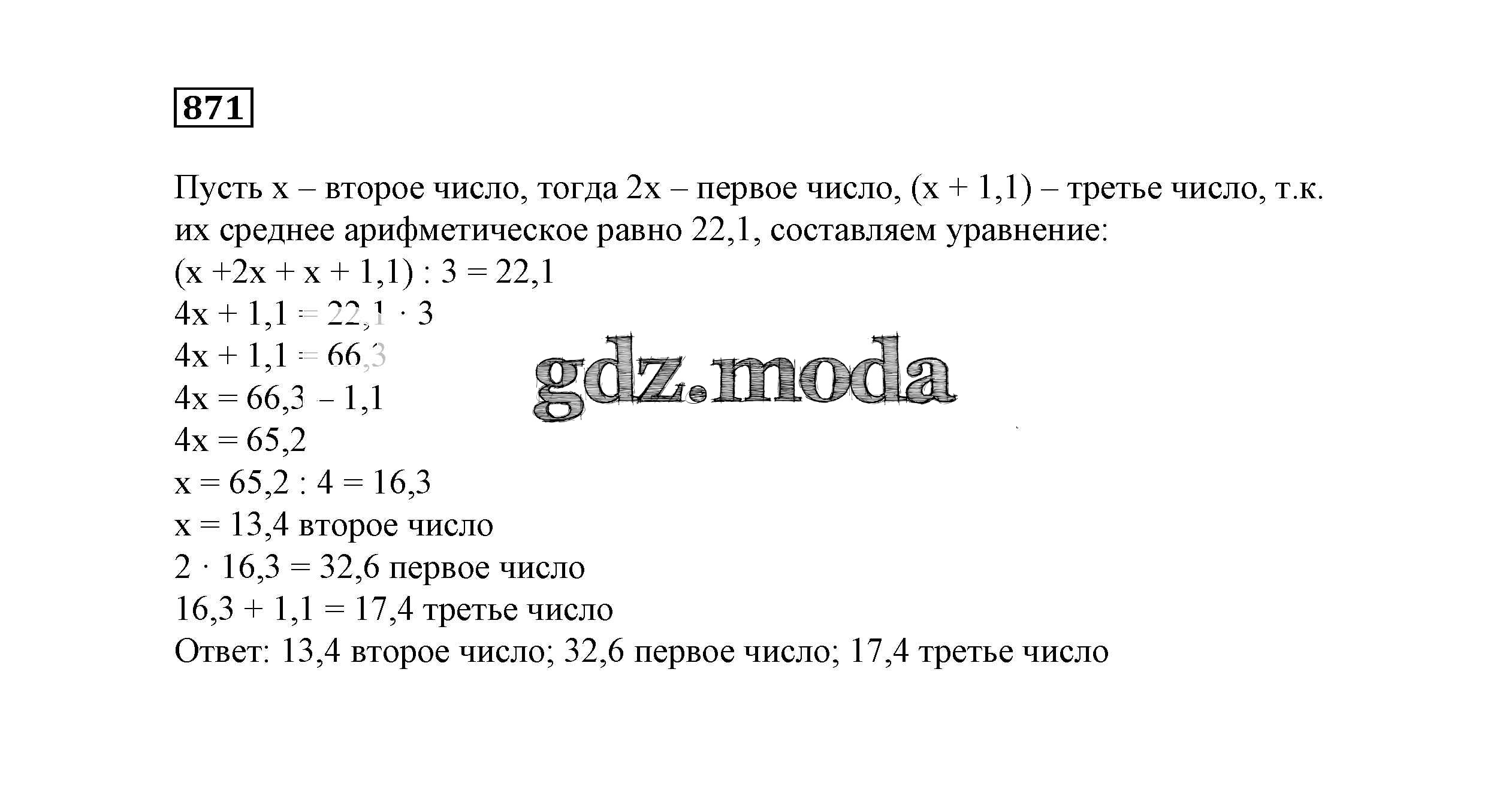 ГДЗ решение к заданию № 871 Математика 6 класс Истомина Н.Б. Ассоциация 21 век 2015 ФГОС бесплатно на гдз.мода!