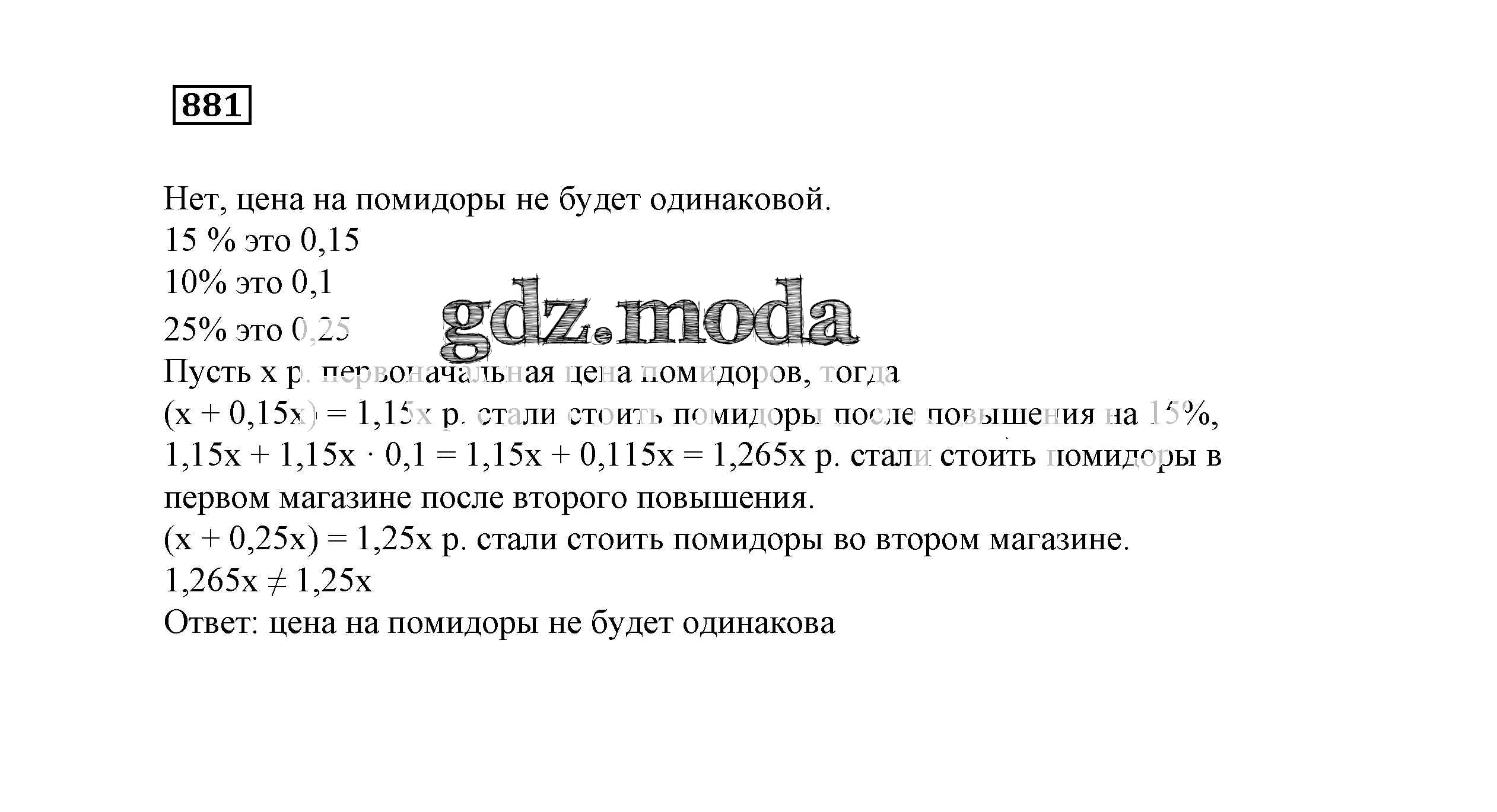 ОТВЕТ на задание № 881 Учебник по Математике 6 класс Истомина