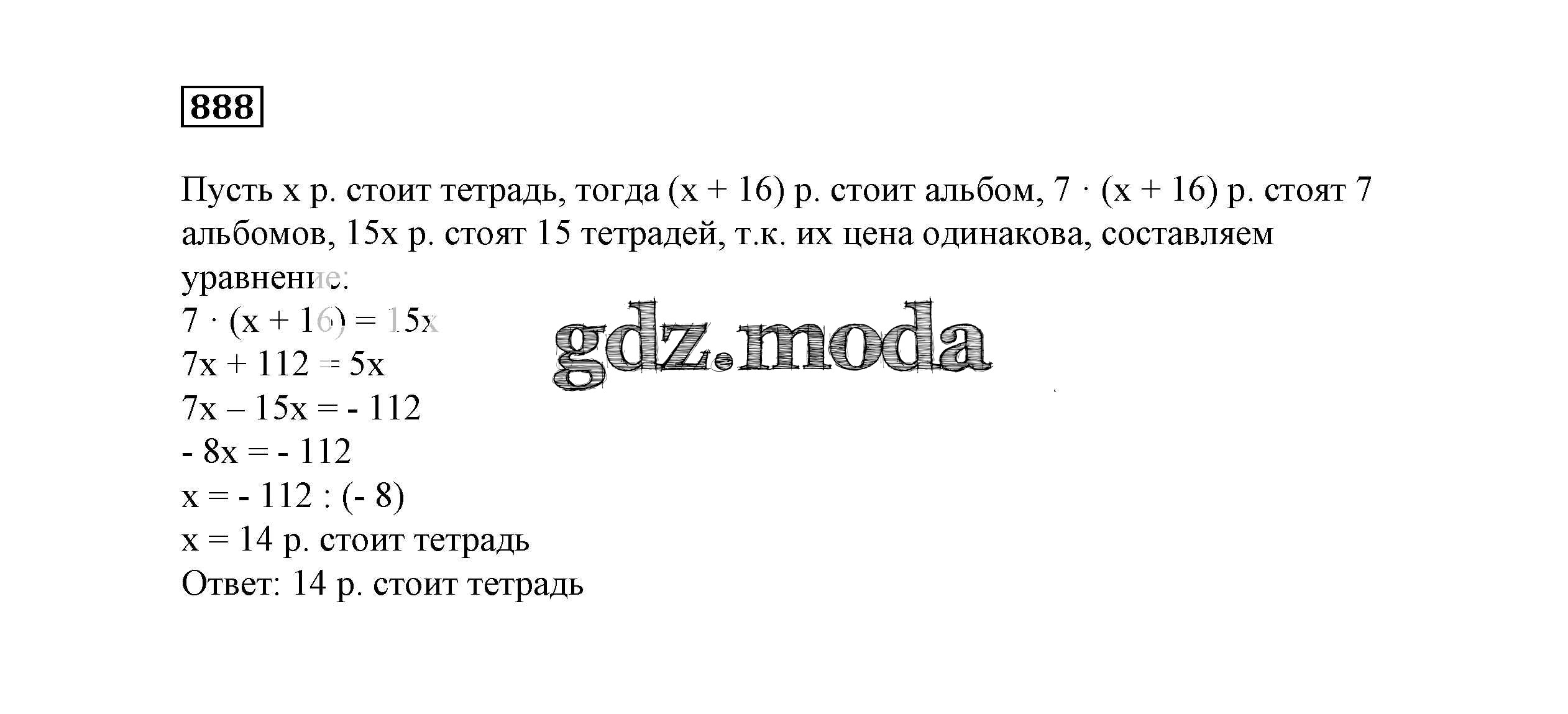 ОТВЕТ на задание № 888 Учебник по Математике 6 класс Истомина