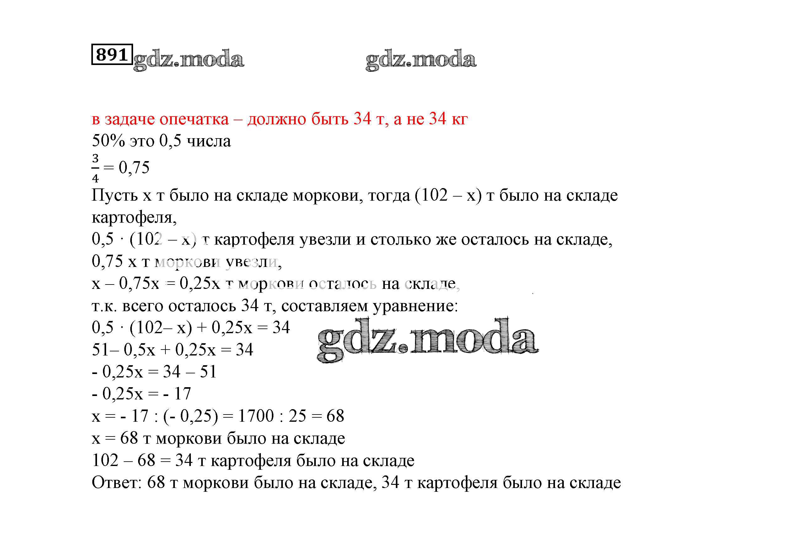 ОТВЕТ на задание № 891 Учебник по Математике 6 класс Истомина