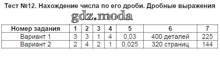 ОТВЕТ на задание № 12 Контрольно-измерительные материалы (КИМ) по Математике 6 класс Глазков