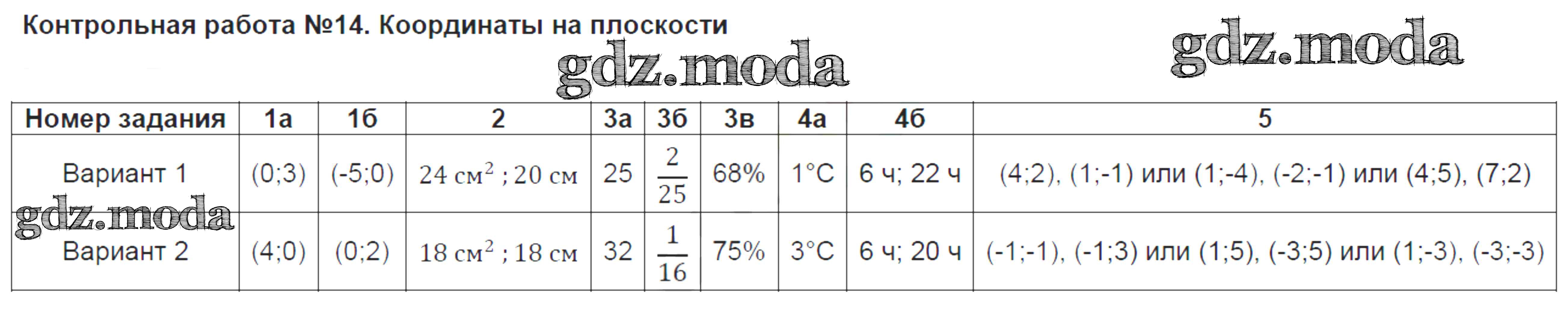 ОТВЕТ на задание № 14 Контрольно-измерительные материалы (КИМ) по Математике 6 класс Глазков
