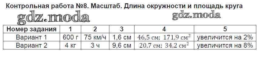ОТВЕТ на задание № 8 Контрольно-измерительные материалы (КИМ) по Математике 6 класс Глазков